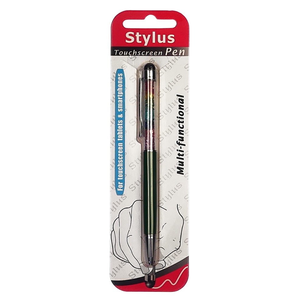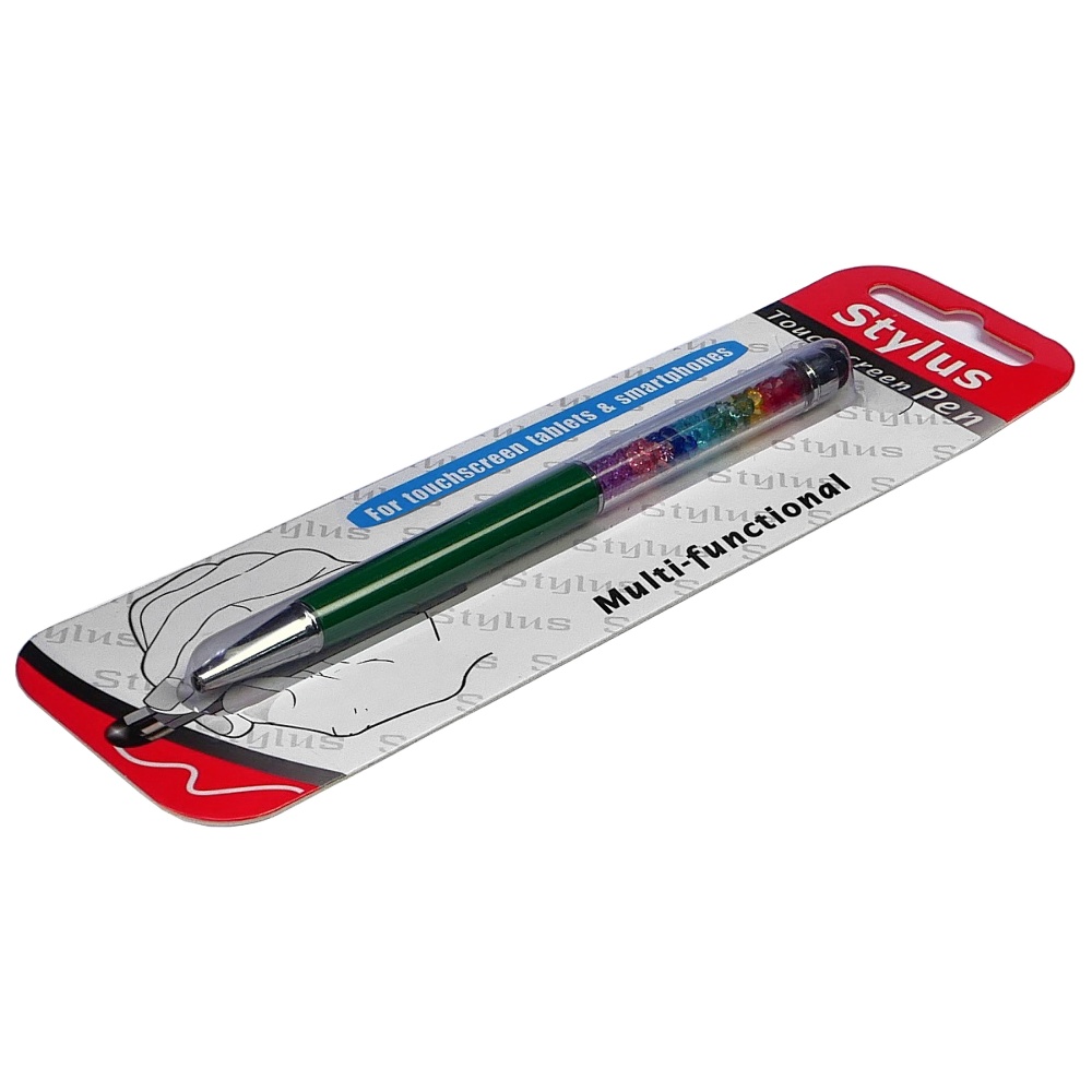 Стилус ємнісний, з кульковою ручкою, металевий, зелений з кристалами кольорів веселки