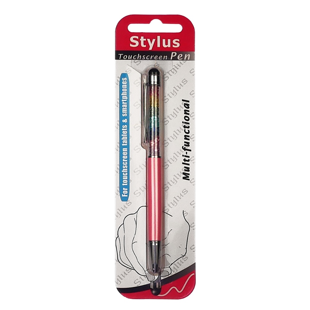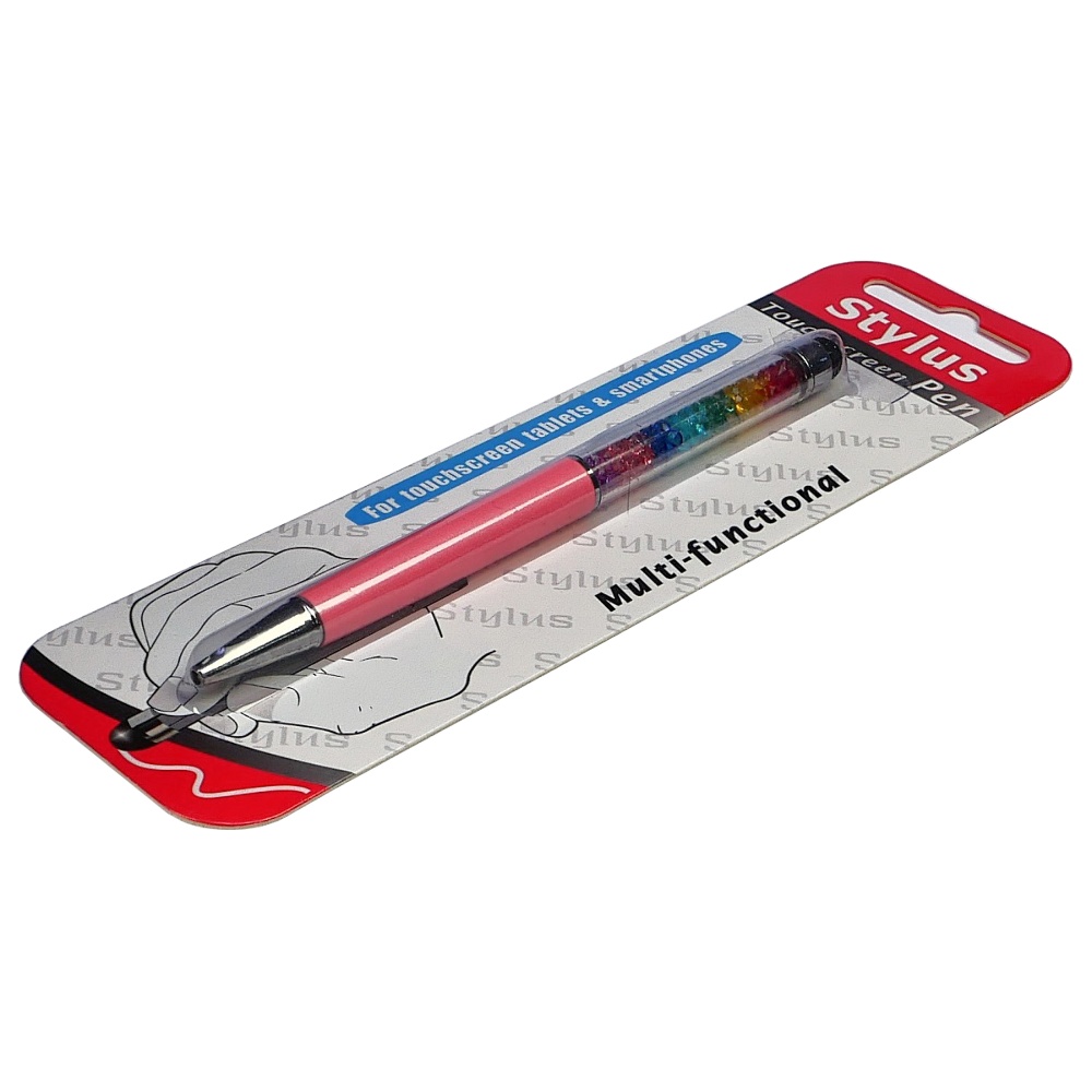 Стилус ємнісний, з кульковою ручкою, металевий, рожевий з кристалами кольорів веселки