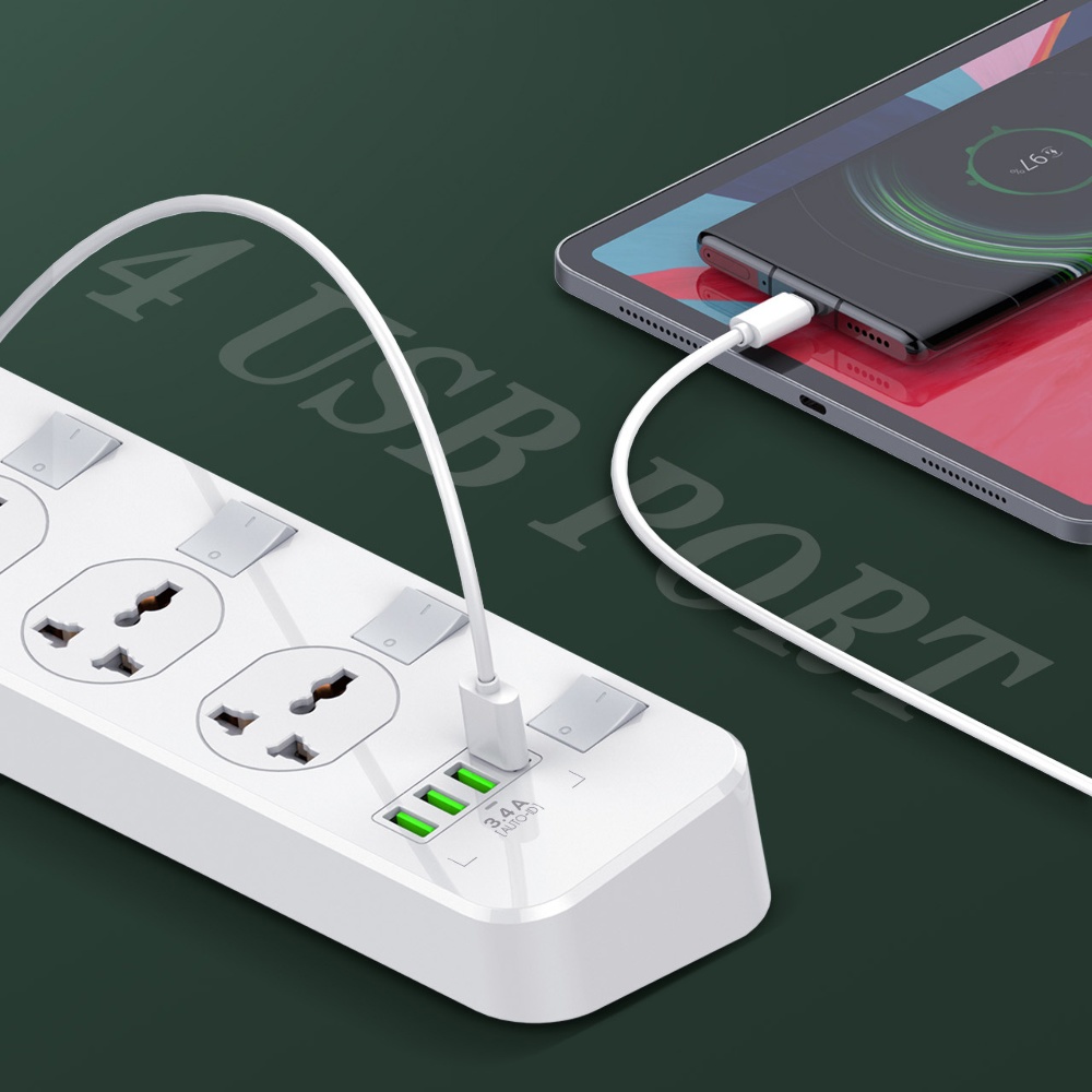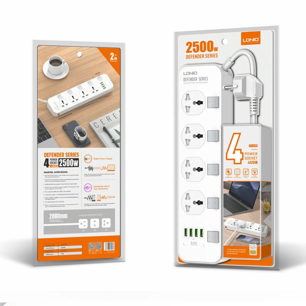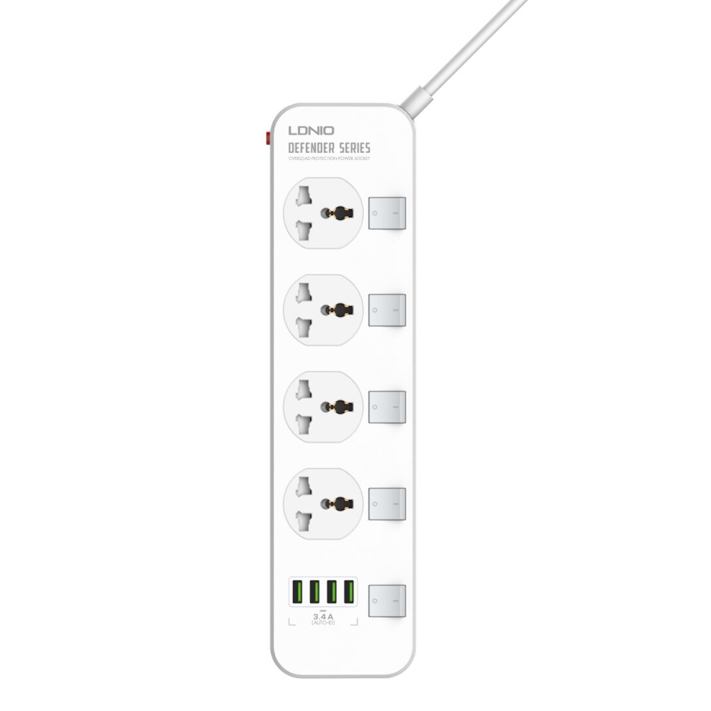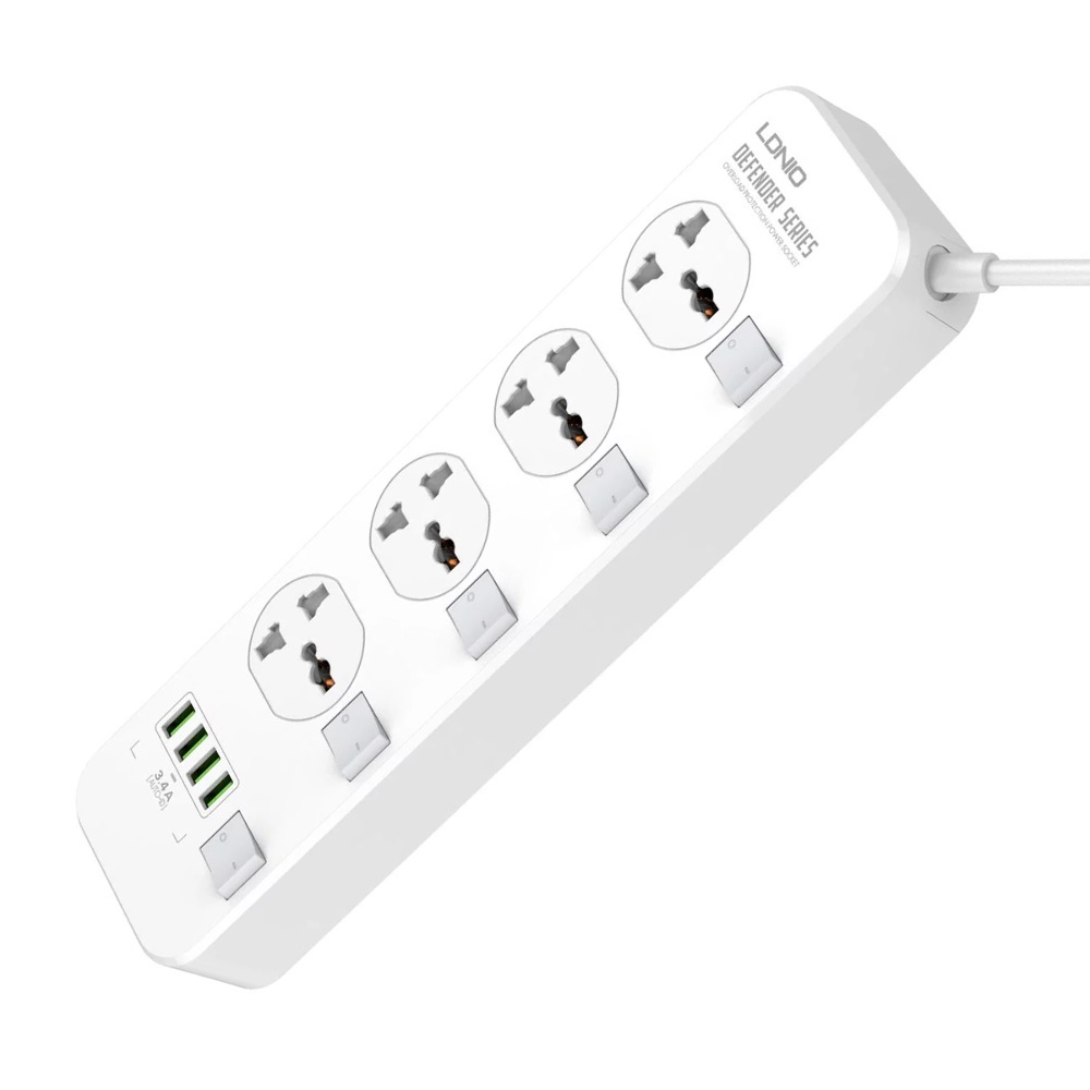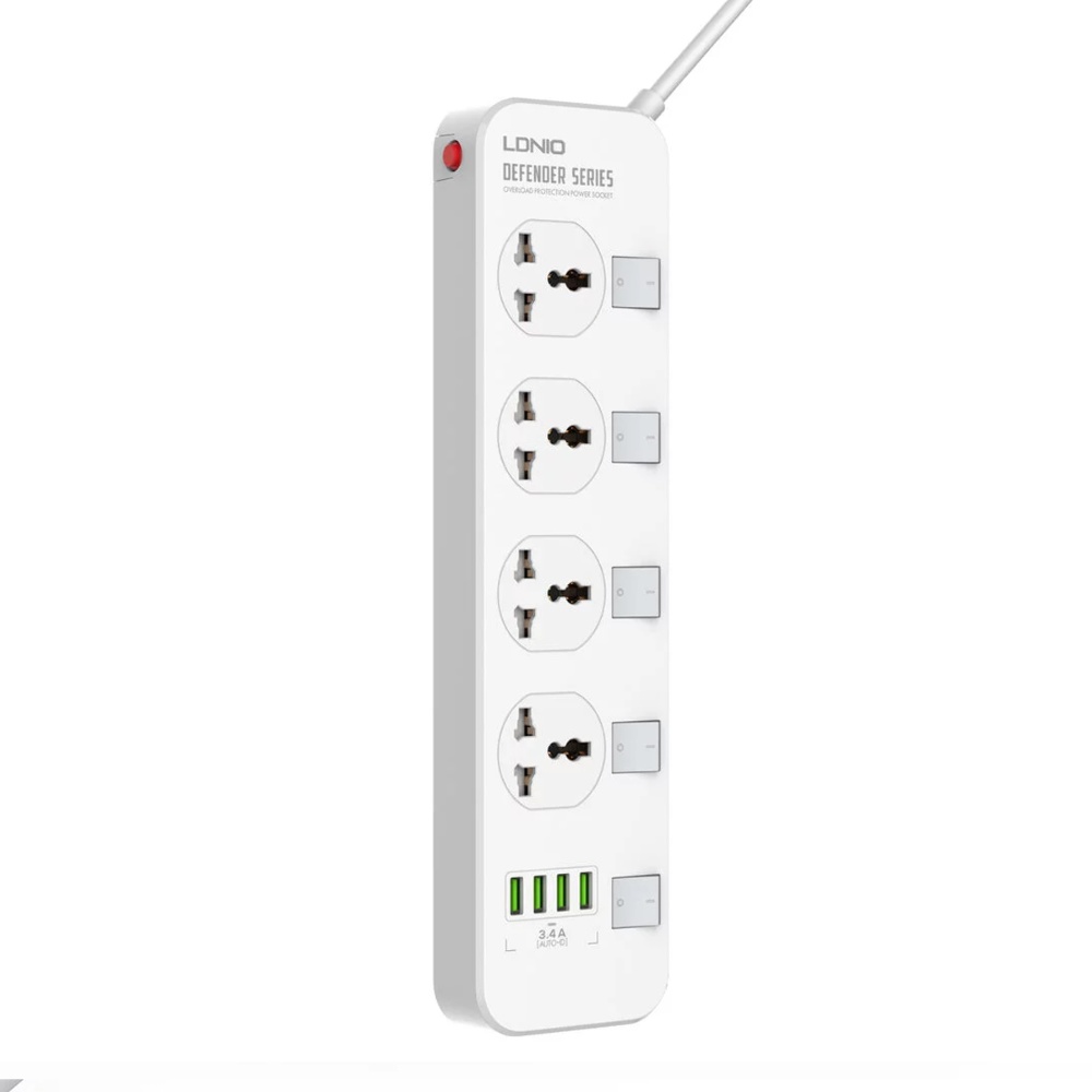 Мережевий подовжувач Ldnio SC4408 EU 4 розетки / 4 USB 17W 3.4A кабель 2m білий - сучасний та універсальний подовжувач із вбудованим мережевим зарядним пристроєм. Подовжувач має 4 мережні роз'єми 220В, а також 4 роз'єми живлення USB 5V 3.4A.