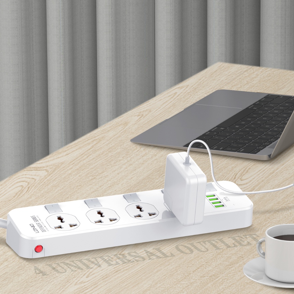 Мережевий зарядний пристрій подовжувач Ldnio SC4408EU 4 USB 4 розетки білий