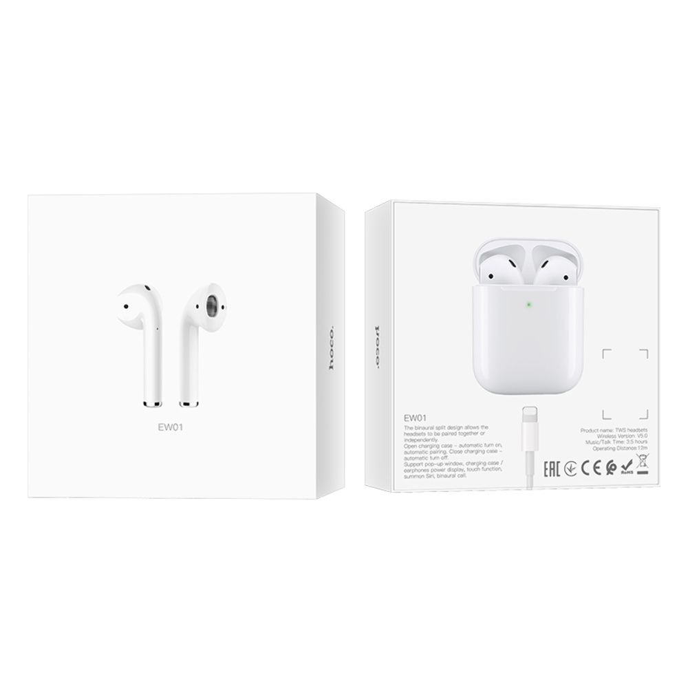 Бездротові TWS навушники Hoco EW01 Plus вкладиші з бездротовою зарядкою white