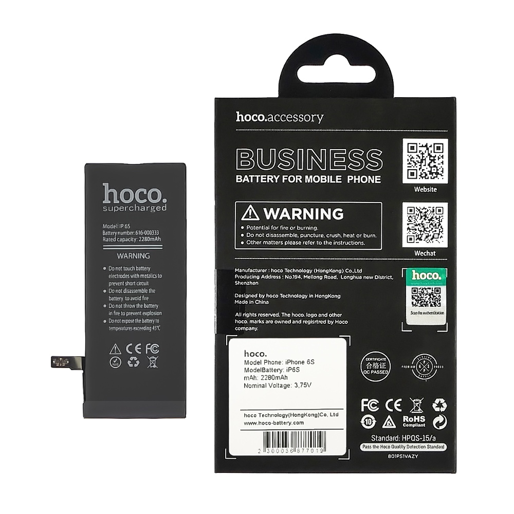 Акумулятор Hoco для Apple iPhone 6S, посилений (2280mAh), а також інші запчастини і аксесуари для мобільних телефонів і планшетів можна вигідно придбати оптом в інтернет-магазині MasterClub.