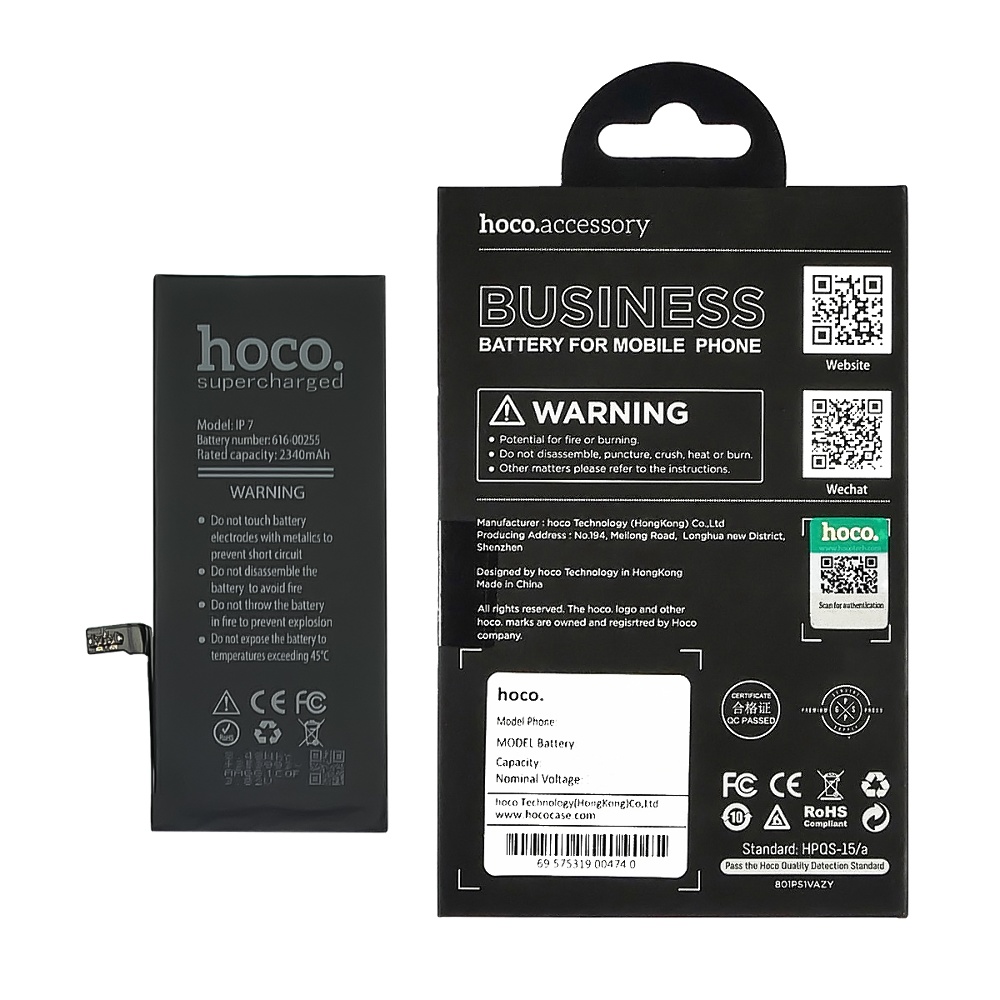 Акумулятор Hoco для Apple iPhone 7, посилений (2340mAh), а також інші запчастини і аксесуари для мобільних телефонів і планшетів можна вигідно придбати оптом в інтернет-магазині MasterClub.