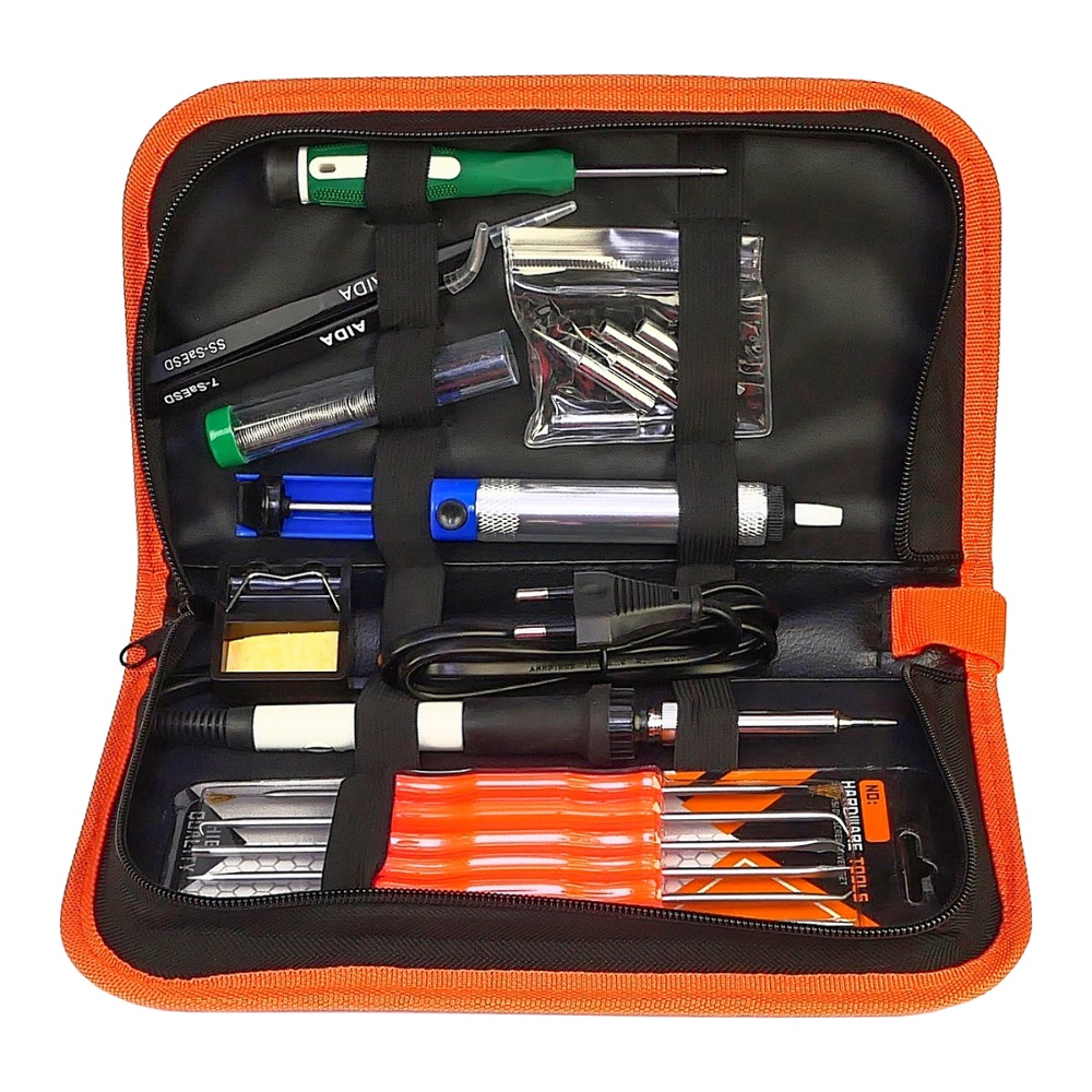 Паяльний набір в пеналі Aida A-806 (паяльник 60W, рег. t 200-450 гр C, жала 900M 6шт, інструменти та розхідники)