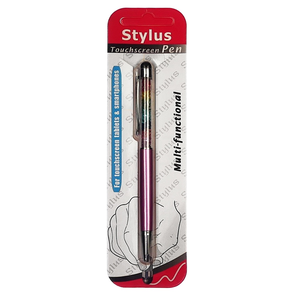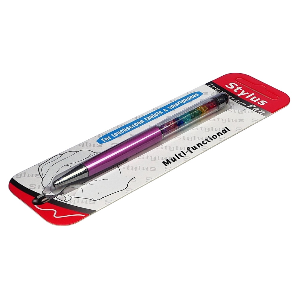 Стилус ємнісний, з кульковою ручкою, металевий, фіолетовий з кристалами кольорів веселки