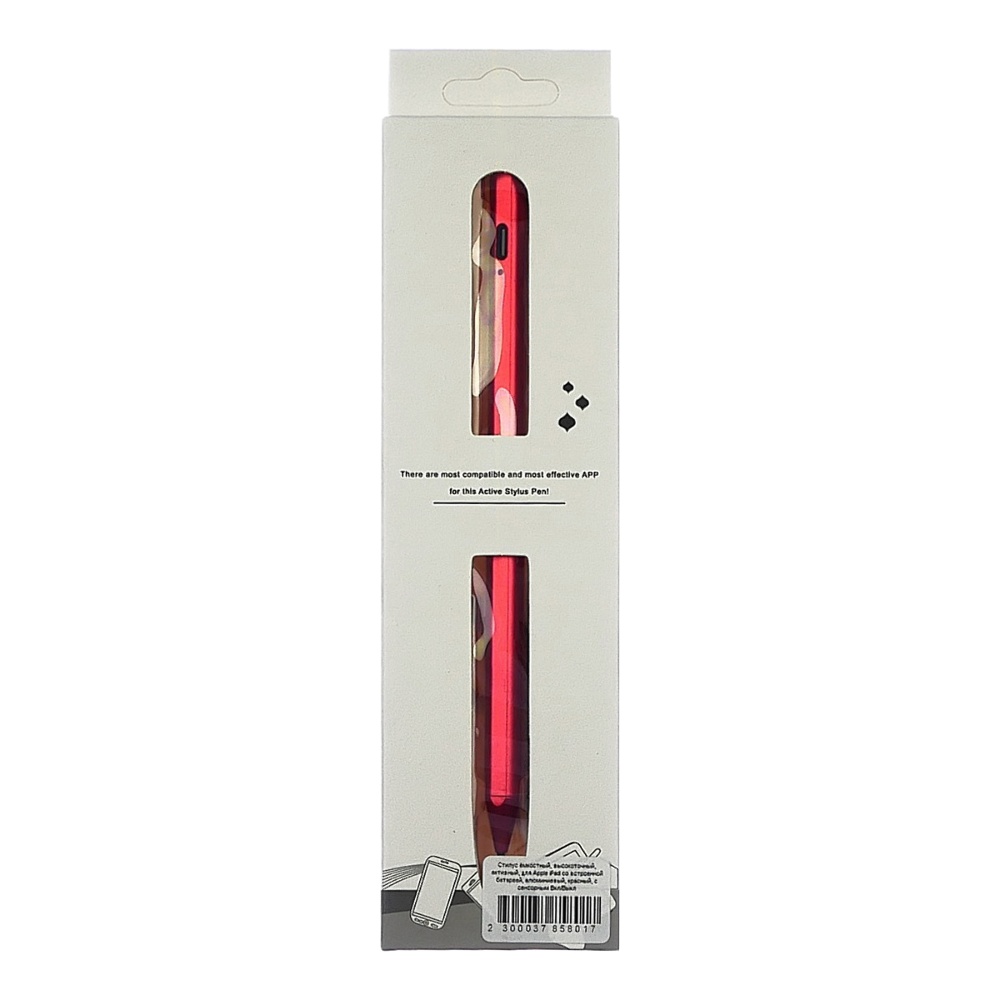 Стілус ємнісний, високоточний, активний для Apple iPad, з вбудованою батареєю, алюмінієвий, червоний, із сенсорним Увімк./ Вимк.