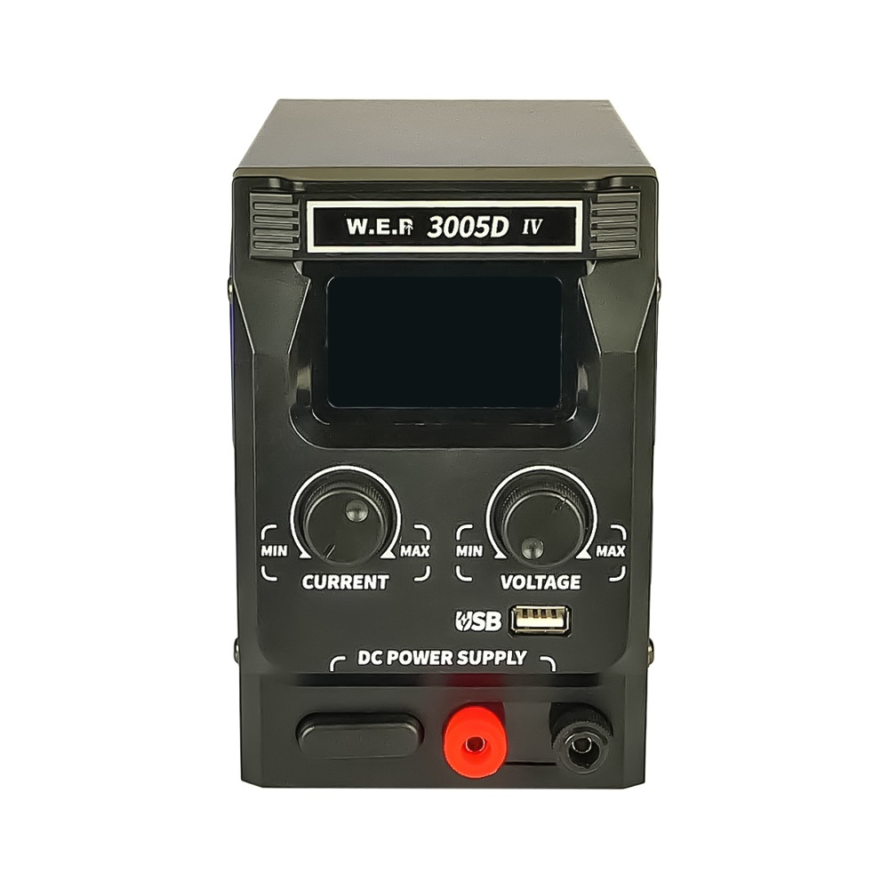 Блок живлення постійного струму WEP 3005D-IV, 30V, 5A, імпульсний, з цифровою індикацією (V/A/W), USB fast charge має високу точність і низький рівень шуму. Ідеально підходить для електронних робіт, живлення навантажень, батарей, друкованих плат та для діагностики та ремонту мобільних телефонів.