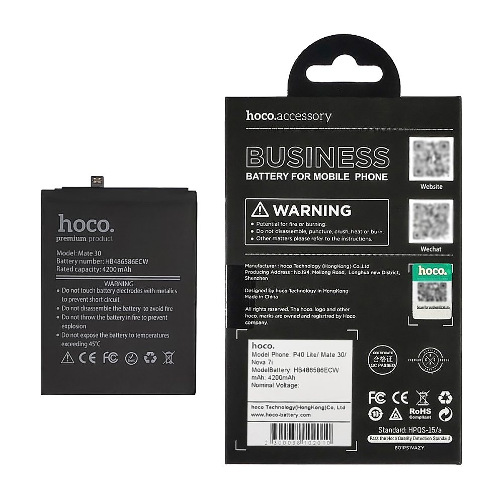 Акумулятор Hoco HB486586ECW для Huawei P40 Lite (JNY-LX1)/ Mate 30/ Honor V30/ Nova 6 SE/ Nova 7i, а також інші запчастини і аксесуари для мобільних телефонів і планшетів можна вигідно придбати оптом в інтернет-магазині MasterClub.