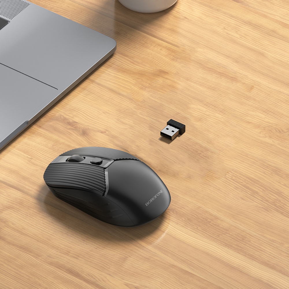 Бездротова миша Borofone BG5 у чорному кольорі – це стильний та зручний пристрій, призначений для забезпечення ефективної роботи та задоволення від використання комп'ютера. Ця миша поєднує в собі функціональність, сучасний дизайн і надійність.