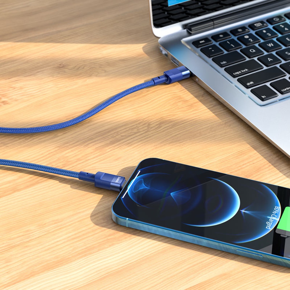 USB кабель Hoco U106 Type-C - Lightning 3A 20W PD 1.2m синій чудове рішення для заряджання та синхронізації даних ваших гаджетів. Шнур тактильно приємний, виконаний із якісних зносостійких матеріалів. Зручна довжина кабелю 1.2m. Кабель Type-C Hoco U106 дозволяє не лише зарядити ваші пристрої, а також передавати дані на комп'ютер чи смартфон.
