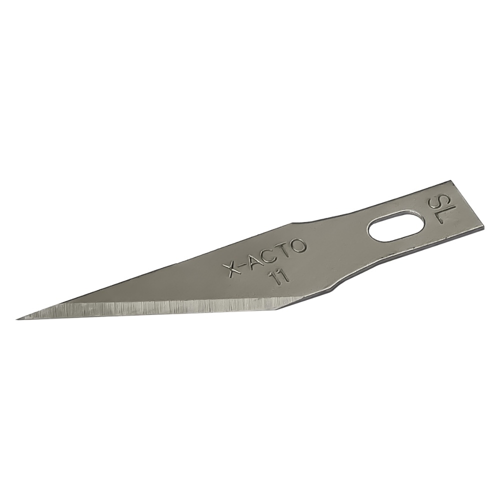 Леза скальпеля X-Acto 11 для ручок з цангою, упаковка 10 штук, забезпечують високу точність різання завдяки точному заточенню з обох боків, роблячи кромки лез дуже гострими.