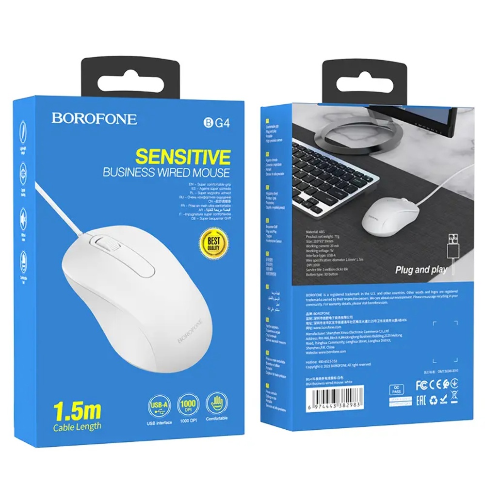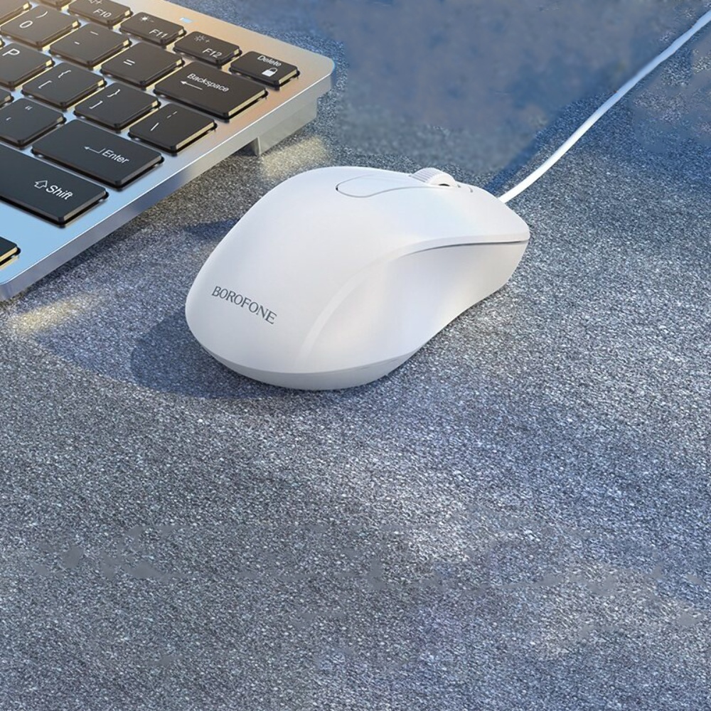 Дротова миша Borofone BG4 в білому кольорі - це надійний пристрій для вашого комп'ютера, який забезпечує комфорт і точність при роботі. Вона є чудовим поєднанням функціональності та стильного дизайну.
