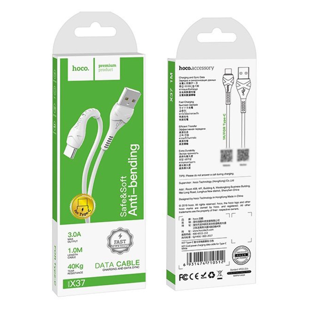 USB кабель Hoco X37 Type-C 3A 1m білий чудове рішення для заряджання та синхронізації даних ваших гаджетів. Шнур тактильно приємний, виконаний із якісних зносостійких матеріалів. Зручна довжина кабелю 1m. Кабель USB Hoco X37 дозволяє не лише зарядити ваші пристрої, а також передавати дані на комп'ютер чи смартфон.