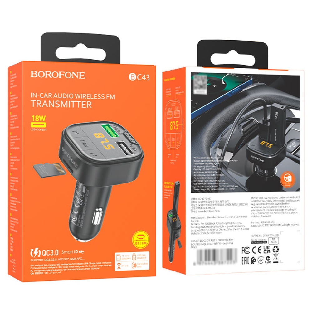 Автомобільний зарядний пристрій Borofone BC43 2 USB QC 18W з FM-модулятором чорне поєднує в собі функціональність та стильний дизайн. Цей пристрій не тільки дозволяє швидко заряджати ваші гаджети, але й забезпечує можливість відтворення музики через FM-радіо, що робить ваші поїздки комфортнішими.
