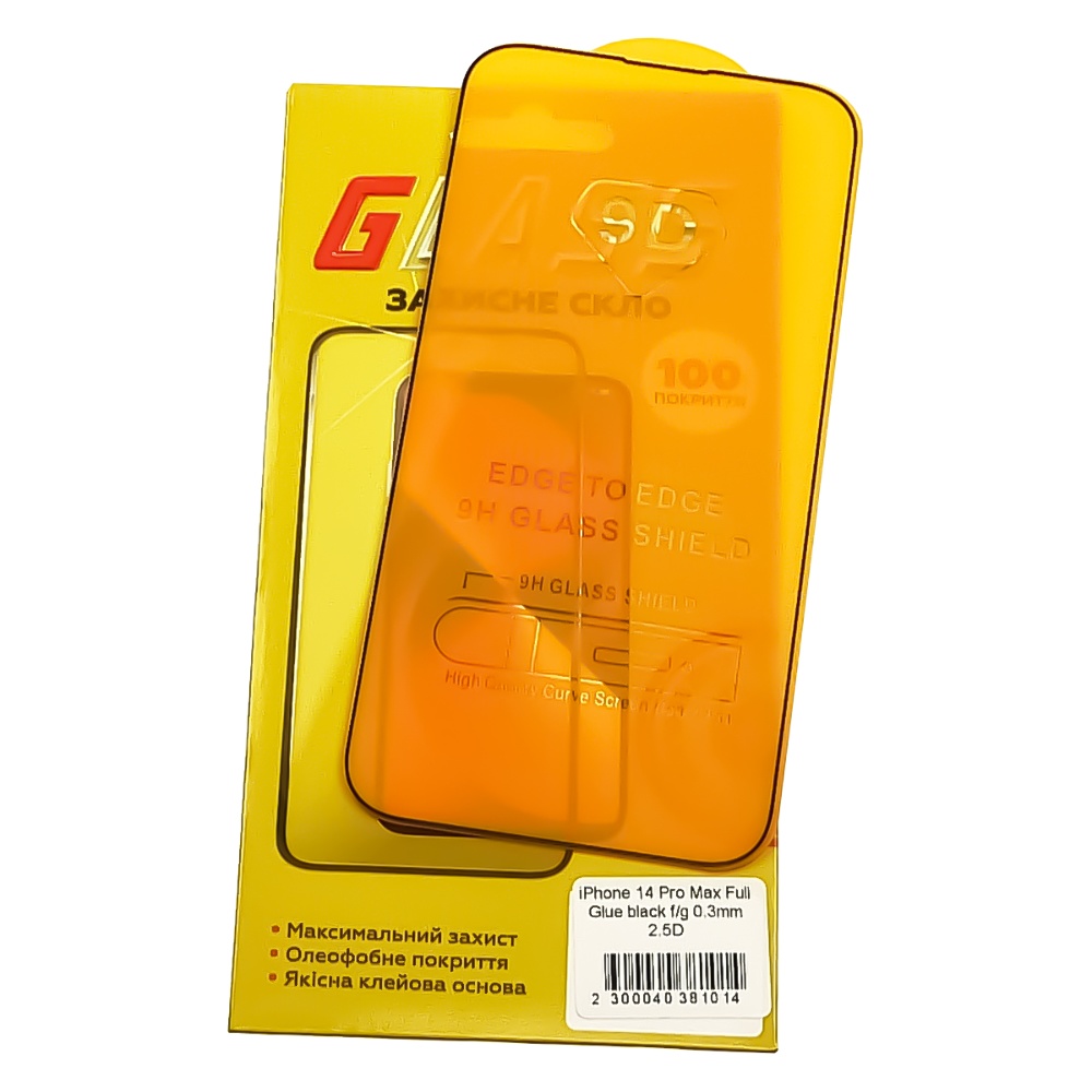 Захисне скло для Apple iPhone 14 Pro Max/ 15 Plus/ 16 PlusFull Glue (0.3 мм, 2.5D, чорне)
