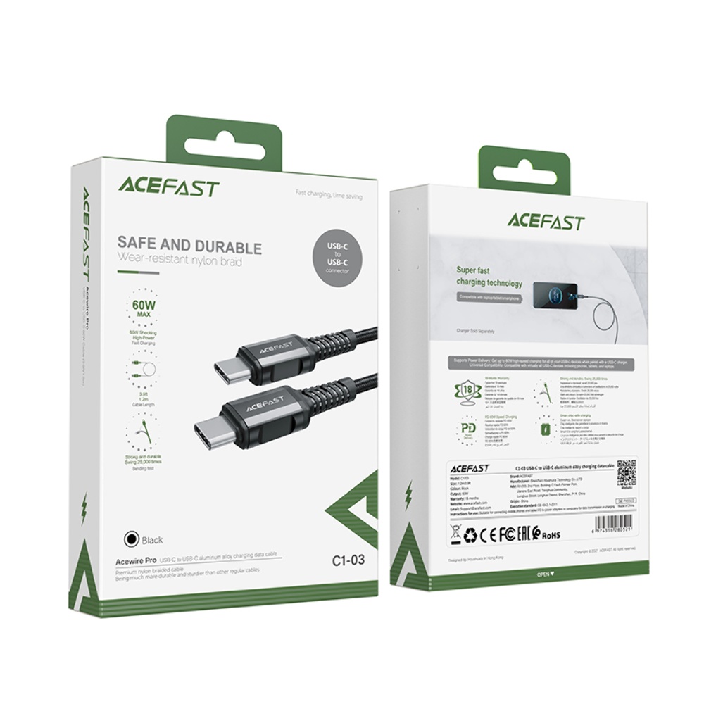 Кабель Acefast C1-03 Type-C to Type-C PD 60W 1.2m black
