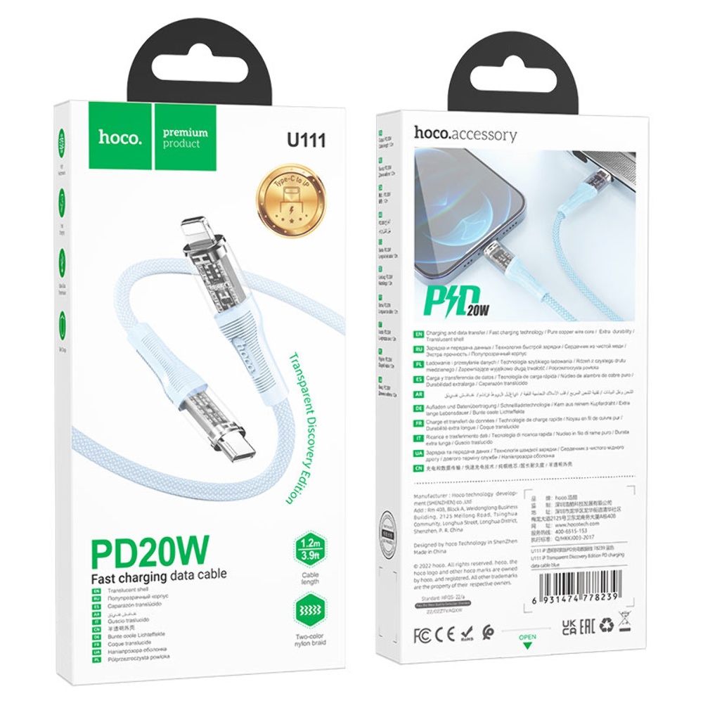 Кабель Hoco U111 Type-C to Lightning PD 1.2m blue