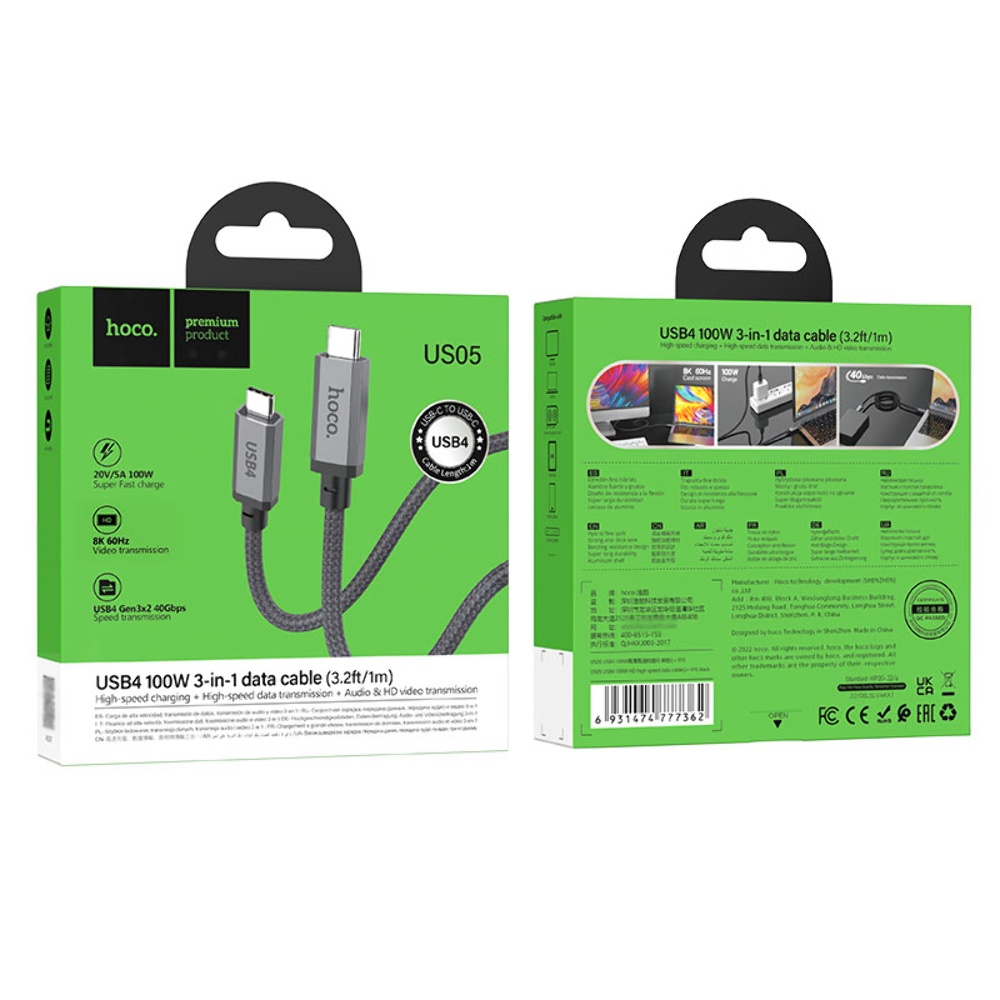 Мультимедійний кабель Hoco US05 Type-C to Type-C USB4 8K Thunderbolt3 PD 100W 1m чорний - це надійне рішення для передачі даних та відео з високою чіткістю. Довжина кабелю становить 1 метр, що забезпечує зручність у використанні. Завдяки підтримці останніх технологій цей кабель стане ідеальним компаньйоном для ваших пристроїв.