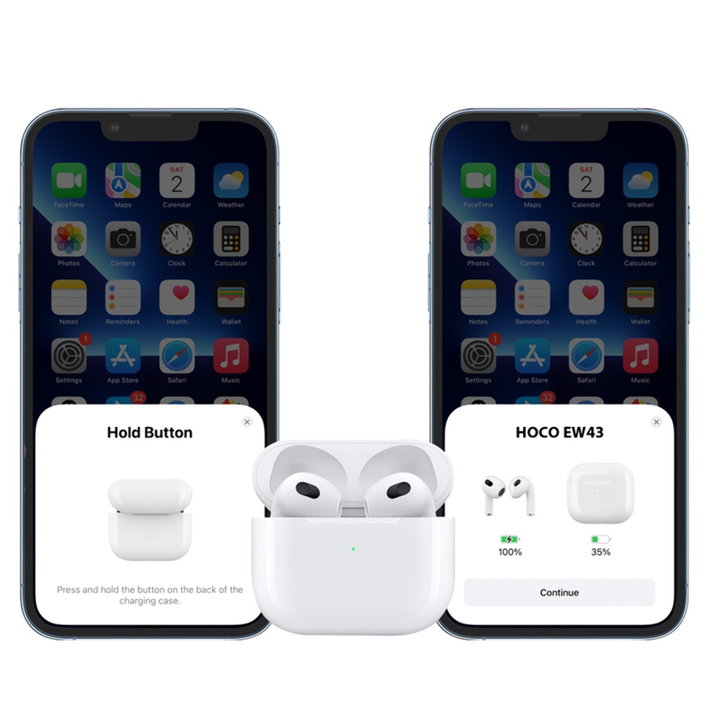 Бездротові TWS навушники Hoco EW43 вкаладиші білі – чудовий вибір для меломанів. Навушники підтримують технологію Bluetooth 5.3 яка забезпечує пару з пристроями IOS, Android та Windows. Немає жодних дротів. Необхідно лише дістати Bluetooth навушники з футляра і вони готові для використання. Сенсорне управління та ергономічна форма навушників забезпечать максимальний комфорт при щоденному використанні.