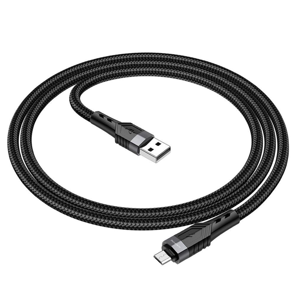Кабель Borofone BU35 USB to MicroUSB 1.2m чорного кольору забезпечує швидку та надійну передачу даних та зарядку для ваших пристроїв. Він має довжину 1.2 метри і важить всього 60 грам, що робить його зручним та компактним для використання вдома, в офісі або у дорозі. Кабель має обплетення та алюмінієвий сплав на конекторах для міцності та довговічності.