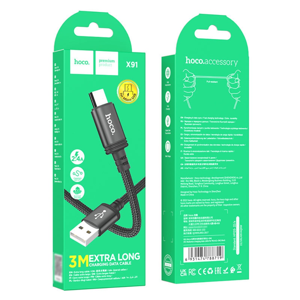 Кабель Hoco X91 USB to MicroUSB 3m чорний - це стильний та якісний кабель, який забезпечує швидку зарядку та передачу даних.