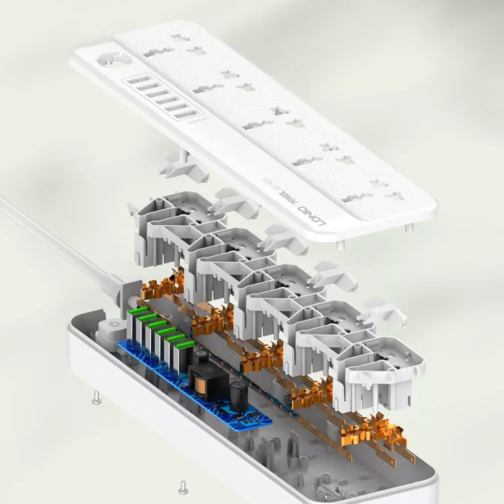 Мережевий зарядний пристрій подовжувач Ldnio SC5614 6 USB 5 розеток білий