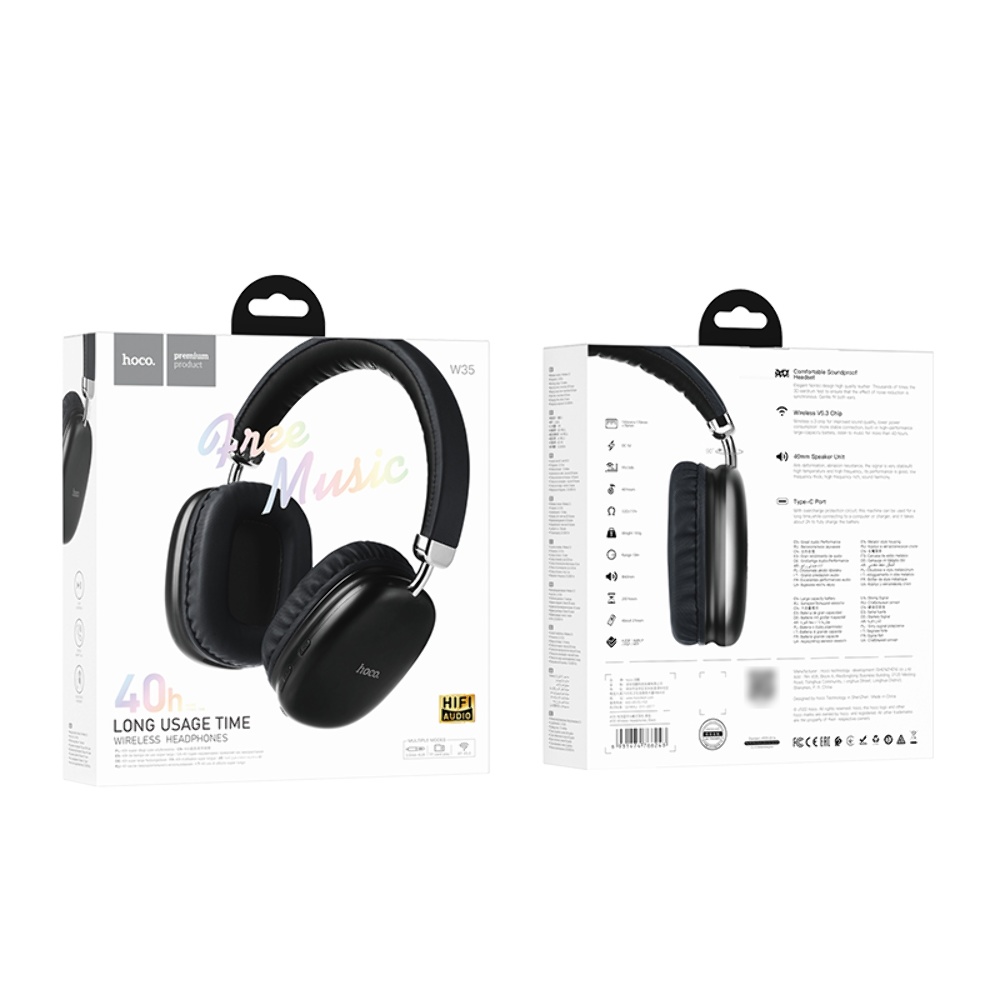 Бездротові накладні навушники Hoco W35 чорного кольору з мікрофоном - це стильний та зручний аксесуар для прослуховування музики та спілкування з друзями та колегами. Вони мають високоякісний звук, тривалий час роботи та підтримують різні режими підключення.