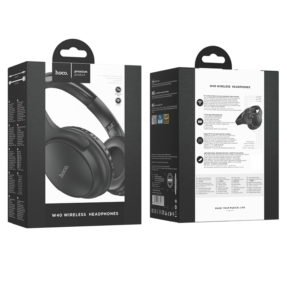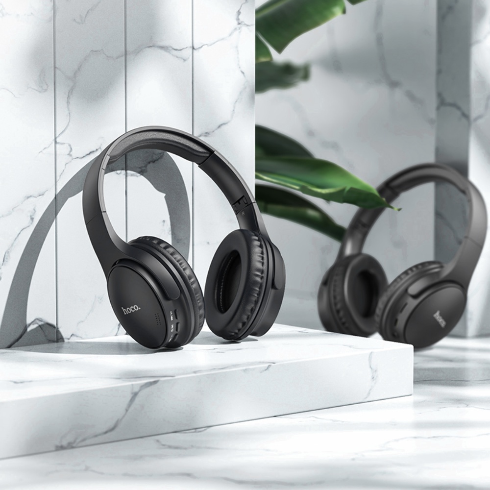 Бездротові накладні навушники Hoco W40 чорного кольору - ідеальне поєднання якості звуку та комфорту використання. Вони стануть незамінним аксесуаром для всіх любителів музики та тих, хто цінує свободу руху та зручність у повсякденному житті.