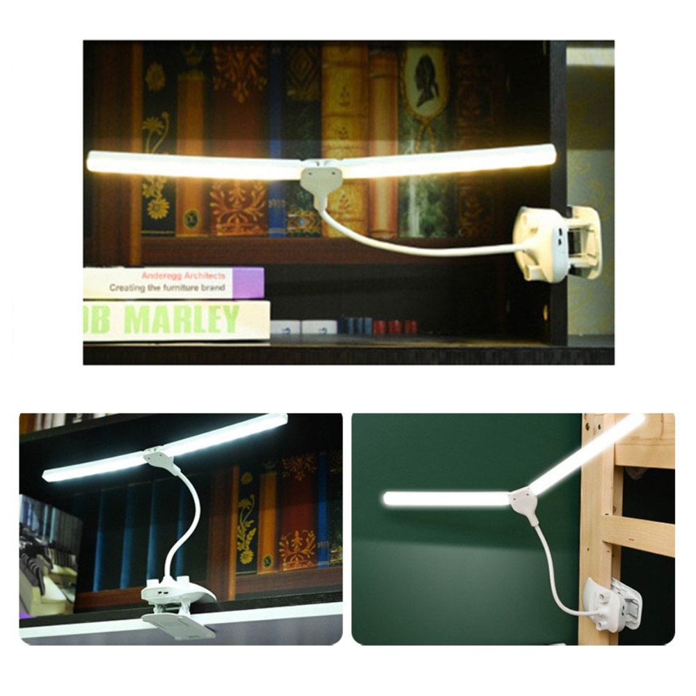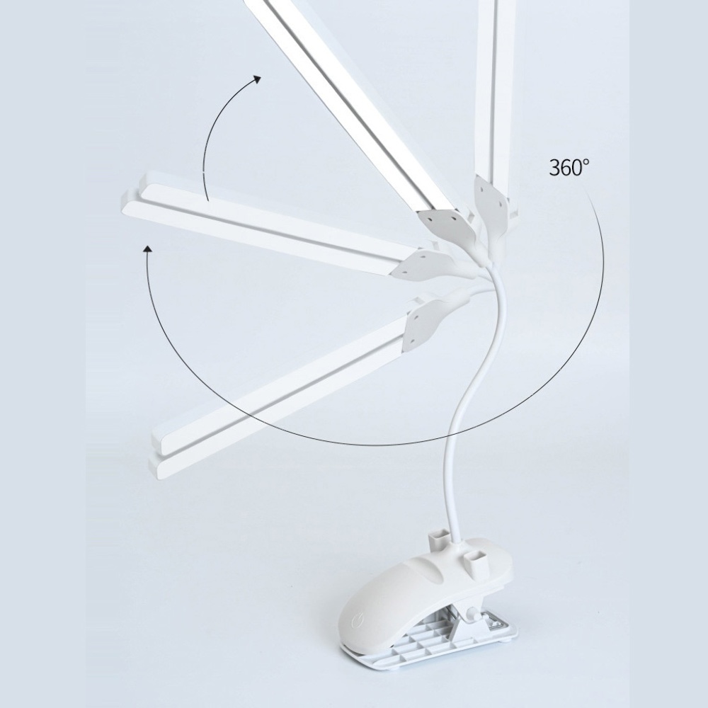 Настільна USB LED лампа гнучка, подвійна з двома акумуляторами та прищіпкою біла