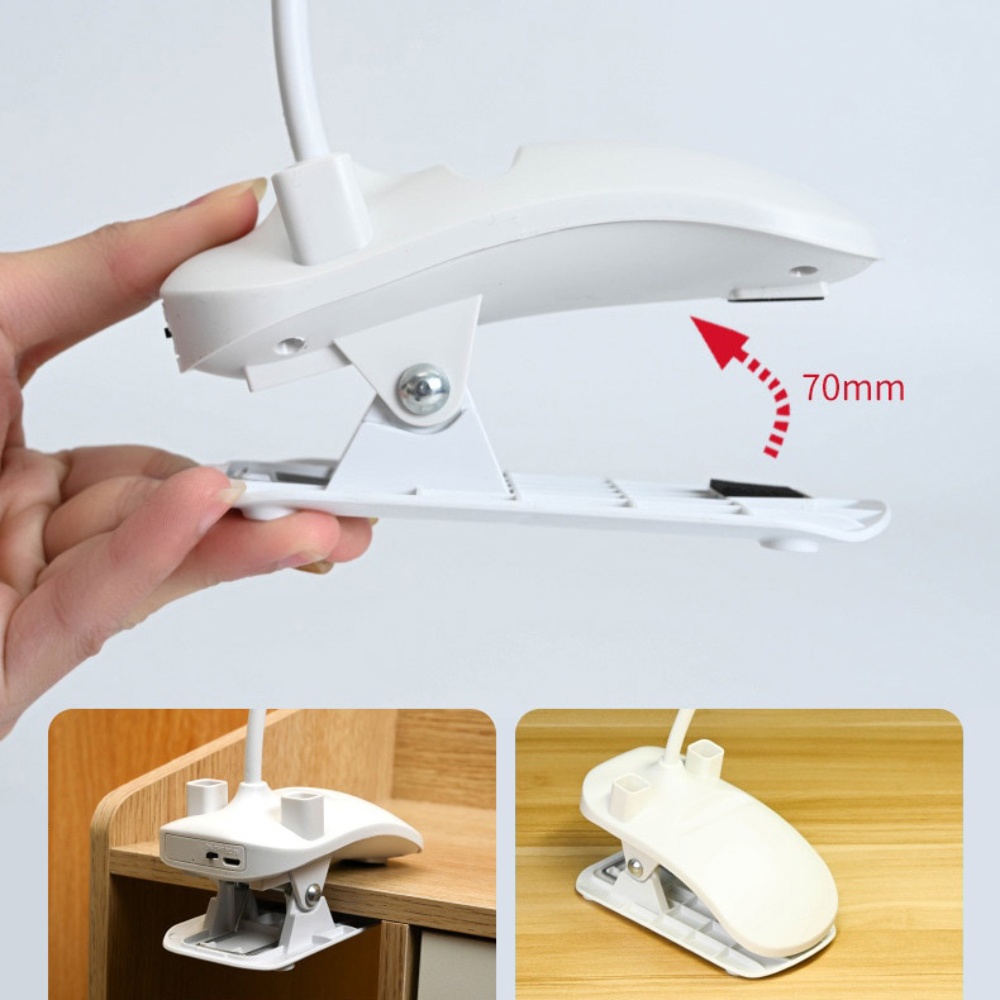 Настільна USB LED лампа гнучка, подвійна з двома акумуляторами та прищіпкою біла - є дуже зручним і універсальним джерелом світла в умовах відсутності доступу до електромережі. За рахунок можливості живлення від будь-якого USB порту 5V її можна підключити до повербанка або ноутбука, завдяки низькому енергоспоживання вона забезпечить освітленням на тривалий час.