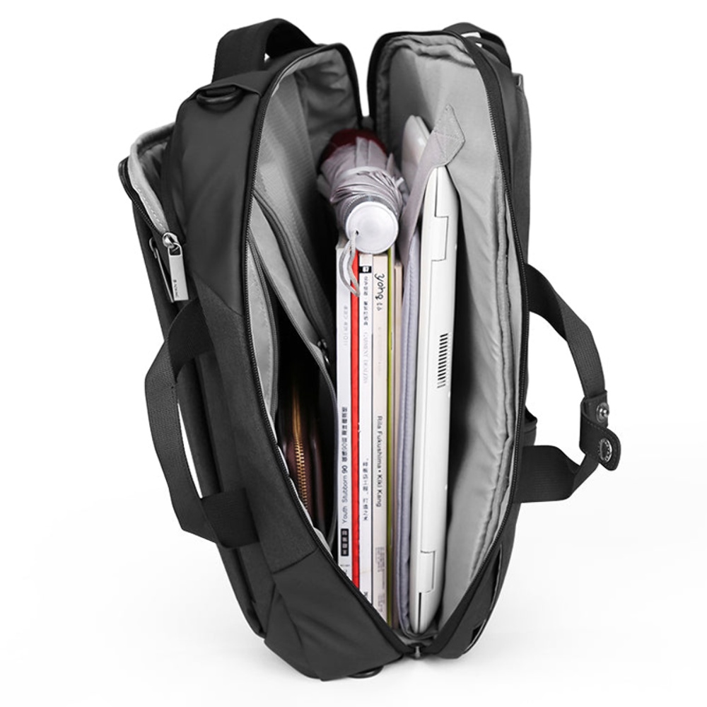 Рюкзак для ноутбука Aoking SN86099 чорний - це багатофункціональний аксесуар, що ідеально підходить для роботи, навчання та подорожей. Його унікальний дизайн дозволяє використовувати його як рюкзак, сумку на плече або ручну сумку, що робить його універсальним та зручним для різних ситуацій. Додаткова безпека забезпечується прихованими кишенями для цінних речей, таких як документи, телефон чи гаманець. Рюкзак також оснащений спеціальною кишенею на плечовому ремені для дрібних предметів, що забезпечує швидкий доступ до них.