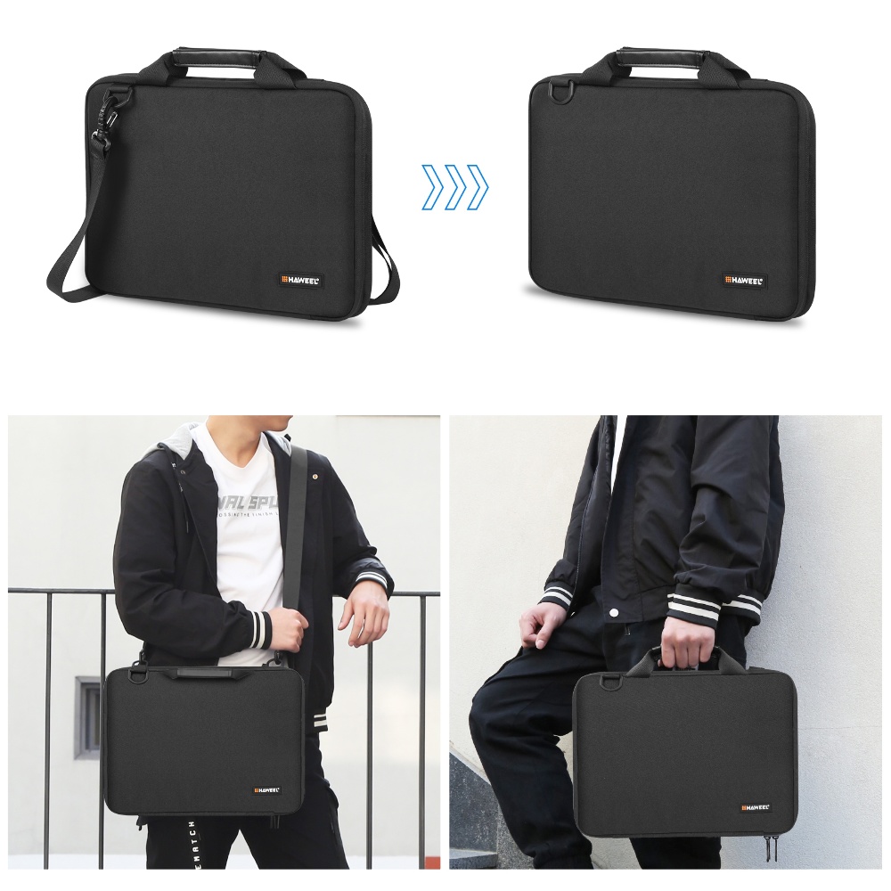 Сумка для ноутбука HAWEEL HWL2169 15-16"" чорна - це ідеальний вибір для тих, хто шукає стильний та надійний захист для свого пристрою. Зовнішній шар виконаний з високоякісної водонепроникної поліестерової тканини, а внутрішня підкладка з м'якого оксамиту та шару перламутрової бавовни забезпечує максимальний захист від ударів, пилу та вологи. Ультратонкий та легкий дизайн робить цю сумку зручною як для повсякденного використання, так і для подорожей.