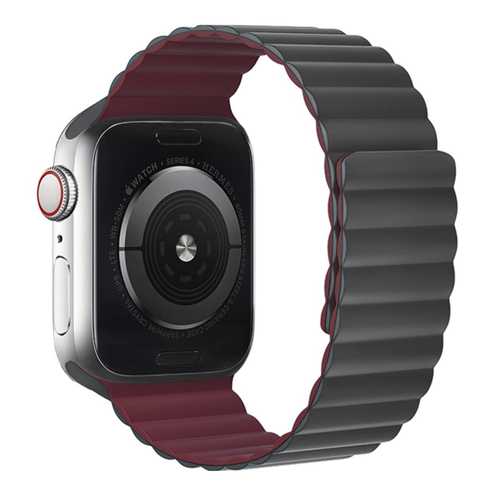 Ремінець силіконовий Hoco iWatch WA07 magnetic 42/ 44/ 45/ 49mm grey red wine