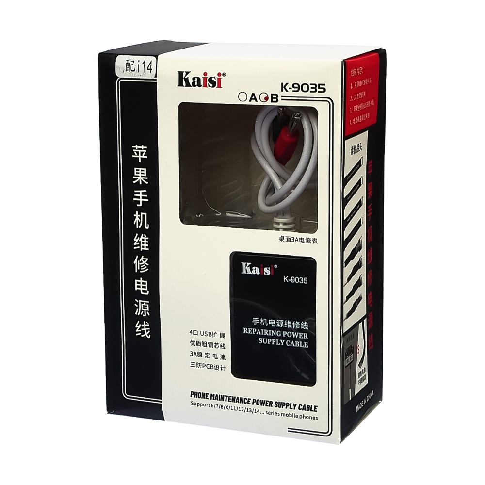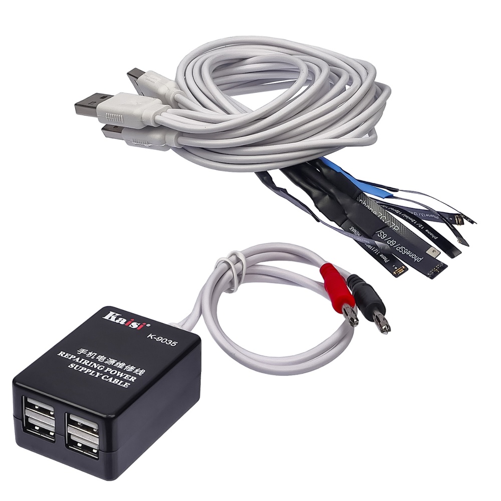 Кабелі для блоків живлення Kaisi K-9035B, з роз'ємами для підключення плат iPhone 6 - 14 Pro Max і перехідником БП до USB 4 шт.