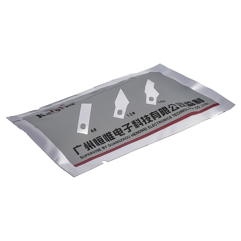 Леза скальпеля Kaisi 17 для ручок з цангою, упаковка 10 штук, забезпечують високу точність різання завдяки точному заточенню з обох боків, роблячи кромки лез дуже гострими.