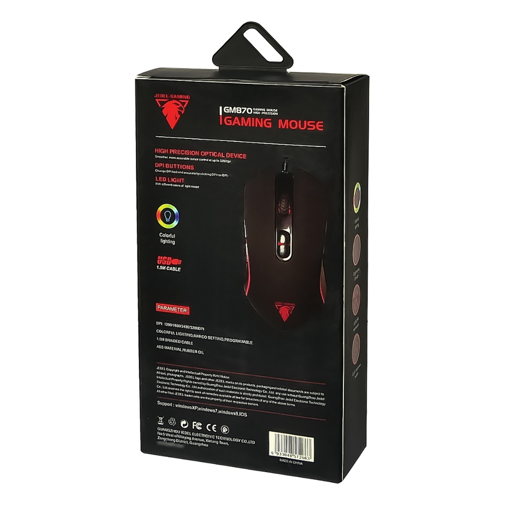 Ігрова миша Jedel GM870 - це ультрасучасний пристрій для геймерів, що надає видатну продуктивність та стильний дизайн. Чорний колір, сучасний дизайн і підсвічування роблять цю мишу відмінним вибором для тих, хто цінує якість і стиль.