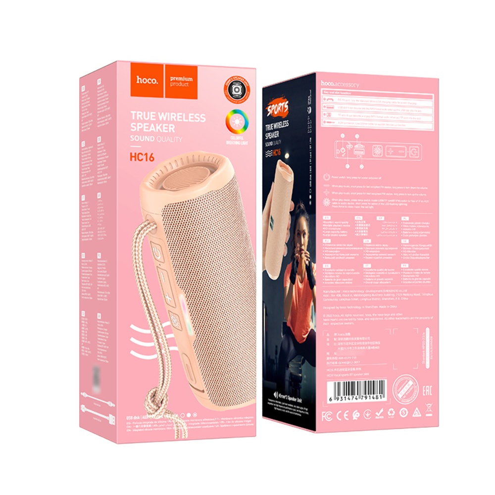 Бездротова колонка Hoco HC16 у рожевому кольорі - це стильний та компактний аудіопристрій, створений для того, щоб зробити вашу музичну атмосферу ще яскравішою.