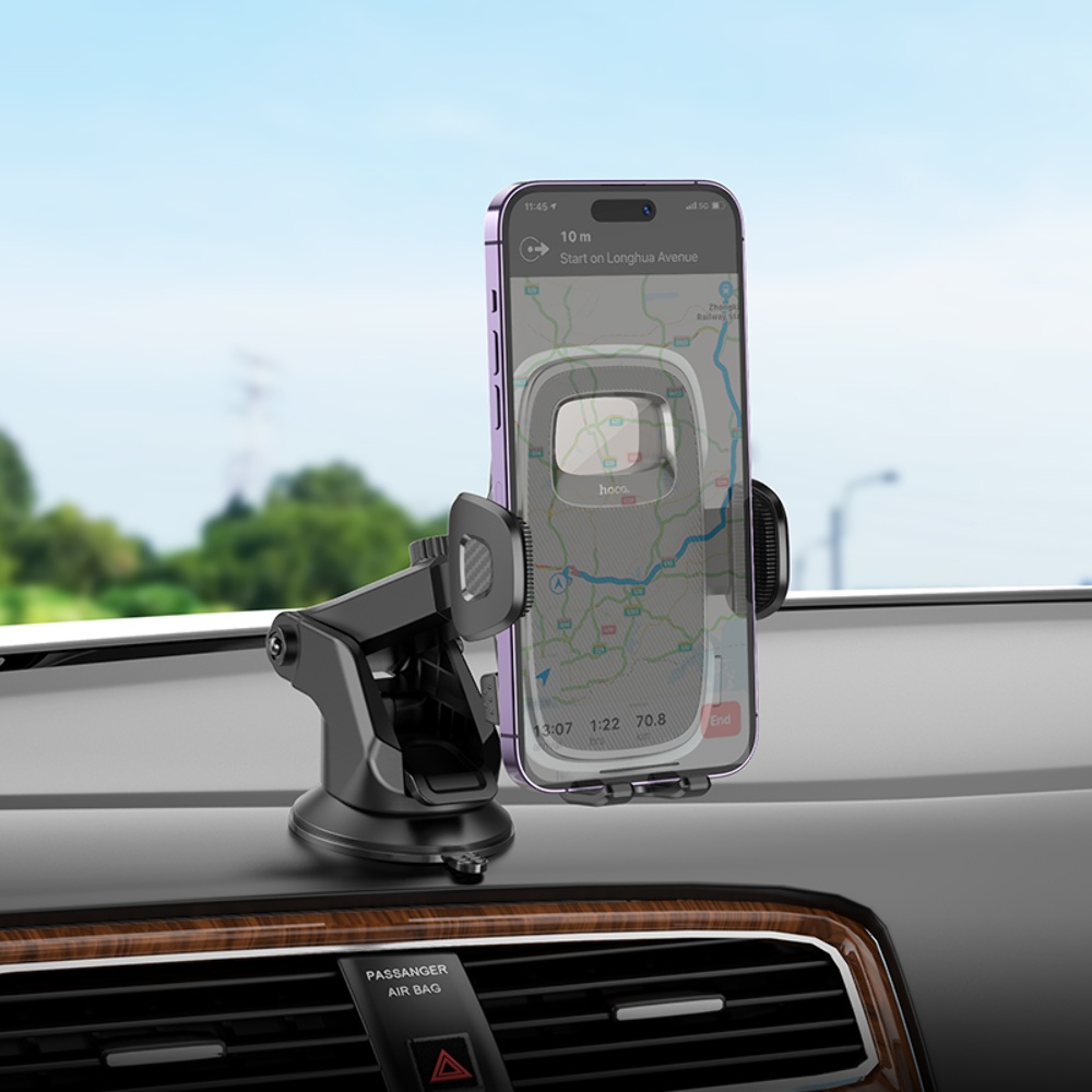 Автотримач Hoco H15 у чорному кольорі ідеально підходить для зручного використання вашого мобільного пристрою в автомобілі.