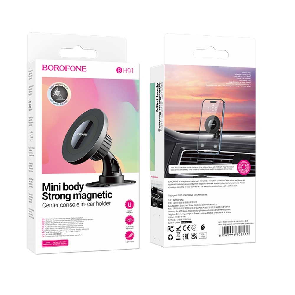 Автотримач Borofone BH91 чорний - це стильний та компактний пристрій для встановлення мобільного телефону у вашому автомобілі. Виготовлений з високоякісного матеріалу - ABS, із застосуванням технологій сонячного опіку та окислення.