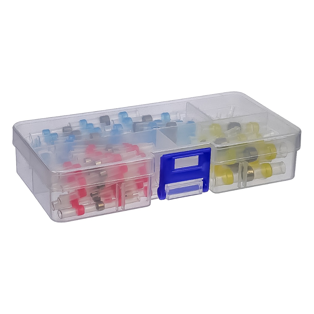Термозбіжні гільзи з припоєм і клеєм, набір 100 шт, у пластиковому боксі