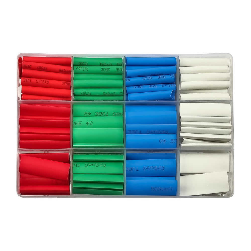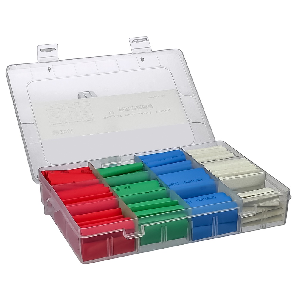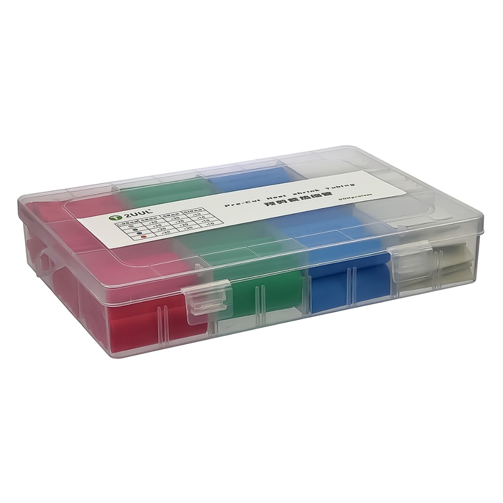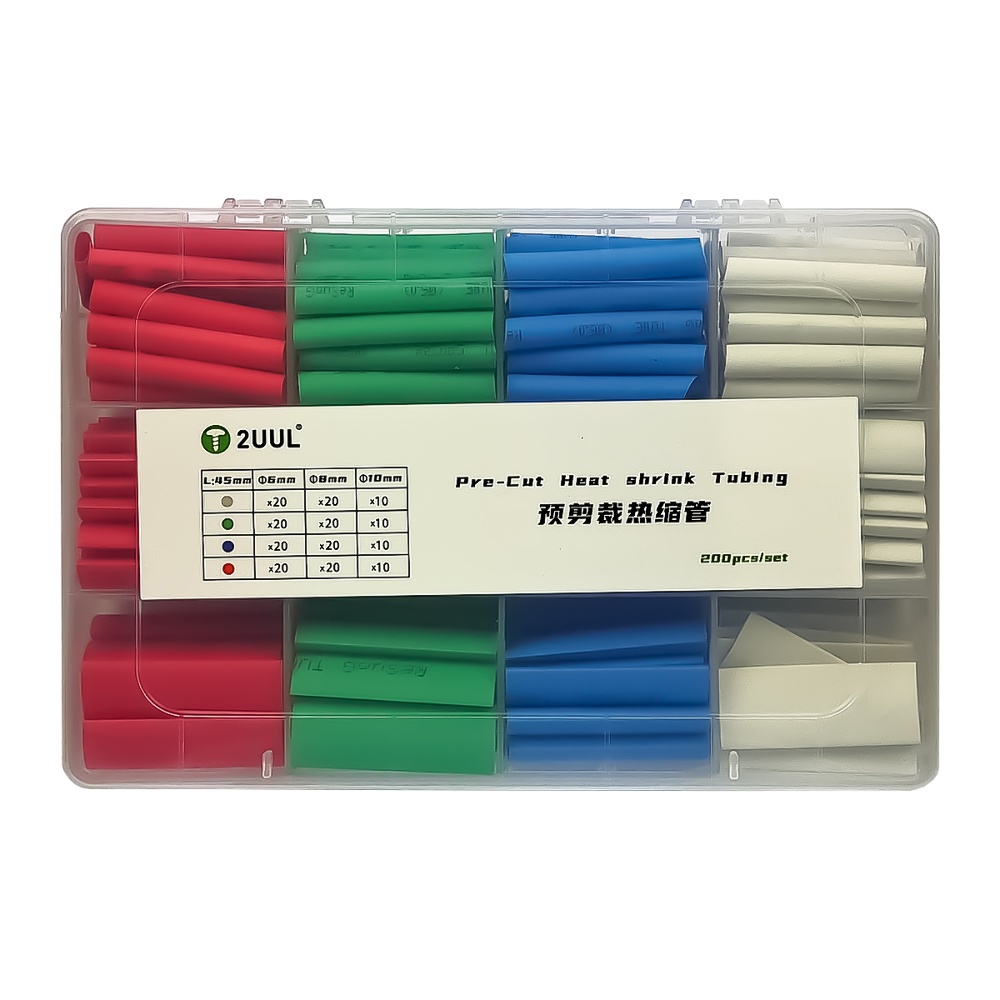 Набір термозбіжних трубок 2UUL 200 шт, 4 кольори, діаметр 6/8/10 мм у пластиковому боксі.