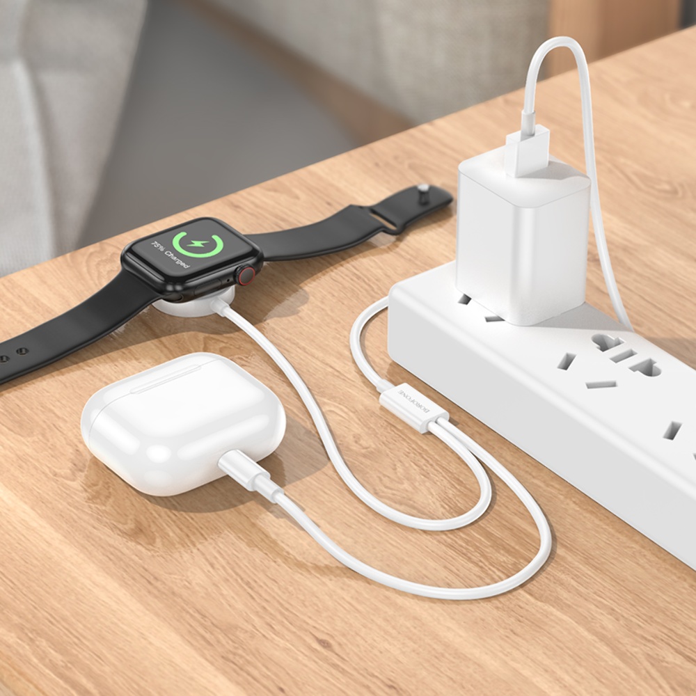Кабель Borofone BQ22 2в1 USB to Lightning/ iWatch Qi 1.2m white