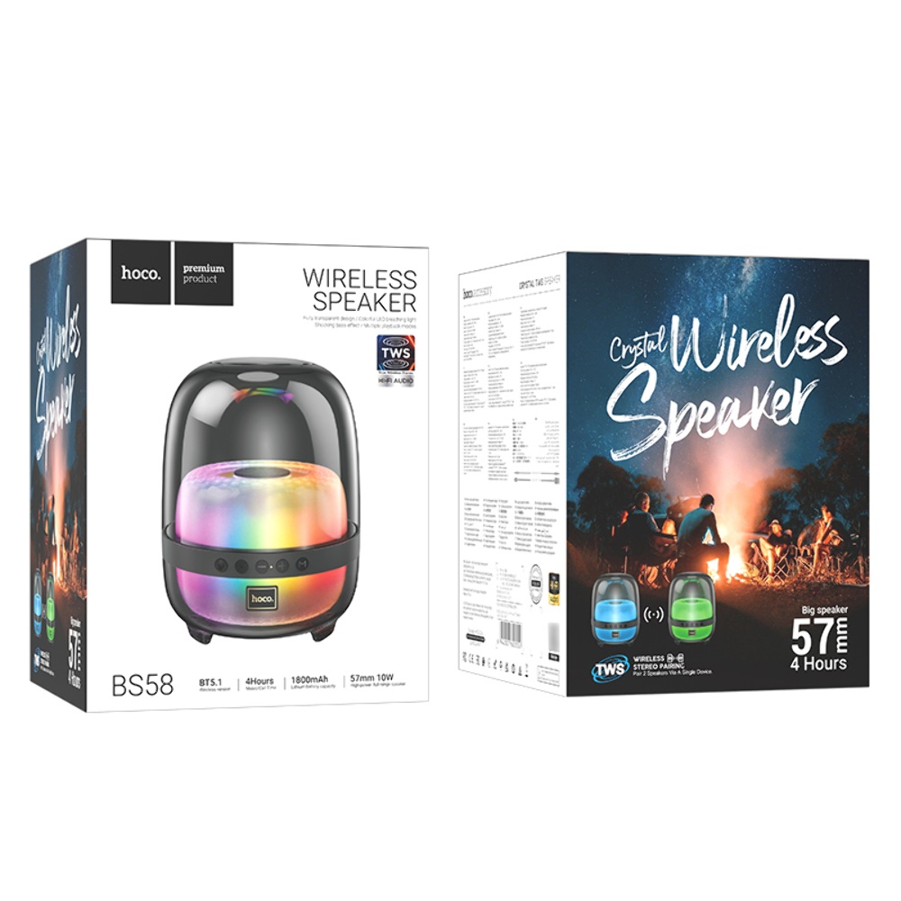 Прозоро-чорна бездротова колонка Hoco BS58 зі світломузикою - це стильний і багатофункціональний пристрій, який забезпечує якісне звучання та вражаючі світлові ефекти, створюючи неповторну атмосферу.