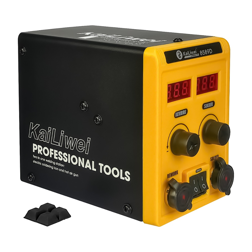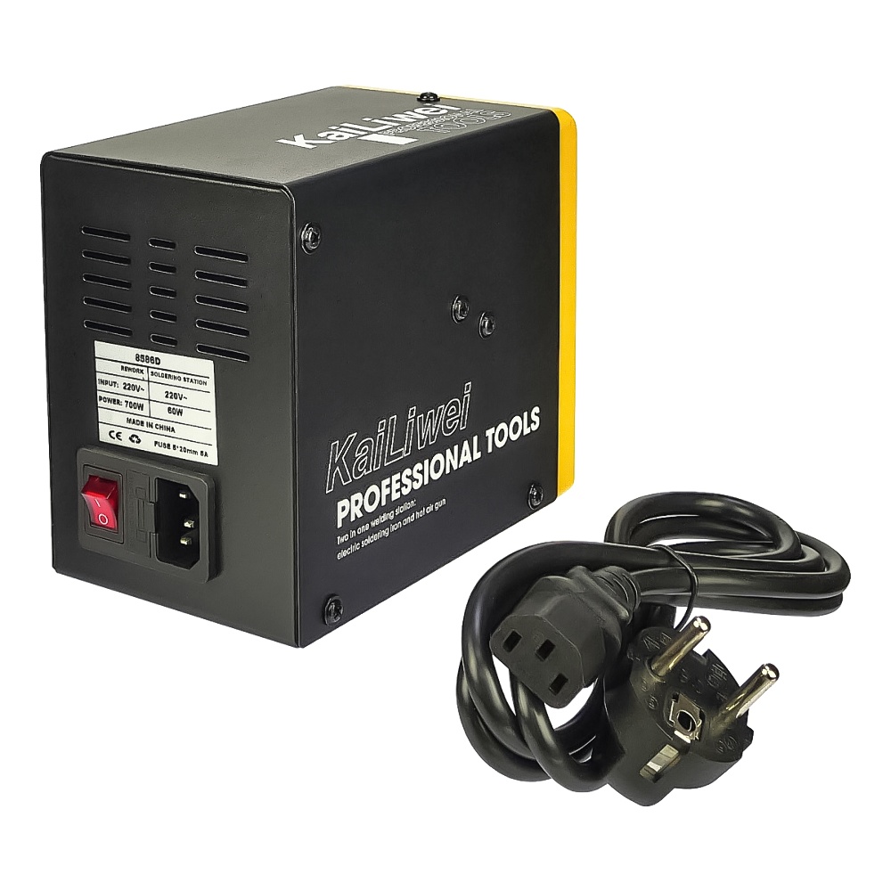 Паяльна станція термоповітряна KaiLiwei 8589D — це багатофункціональний пристрій, що ідеально підходить для професійного використання в ремонті та пайці електроніки. Потужний фен з датчиком нахилу (700W) забезпечує стабільну роботу та швидке нагрівання, а паяльник із термоелементом Hakko (60W) гарантує точну підтримку температури для якісного виконання паяння. Цифрова індикація температури дозволяє точно контролювати робочі параметри, що спрощує процес роботи і забезпечує високу ефективність.