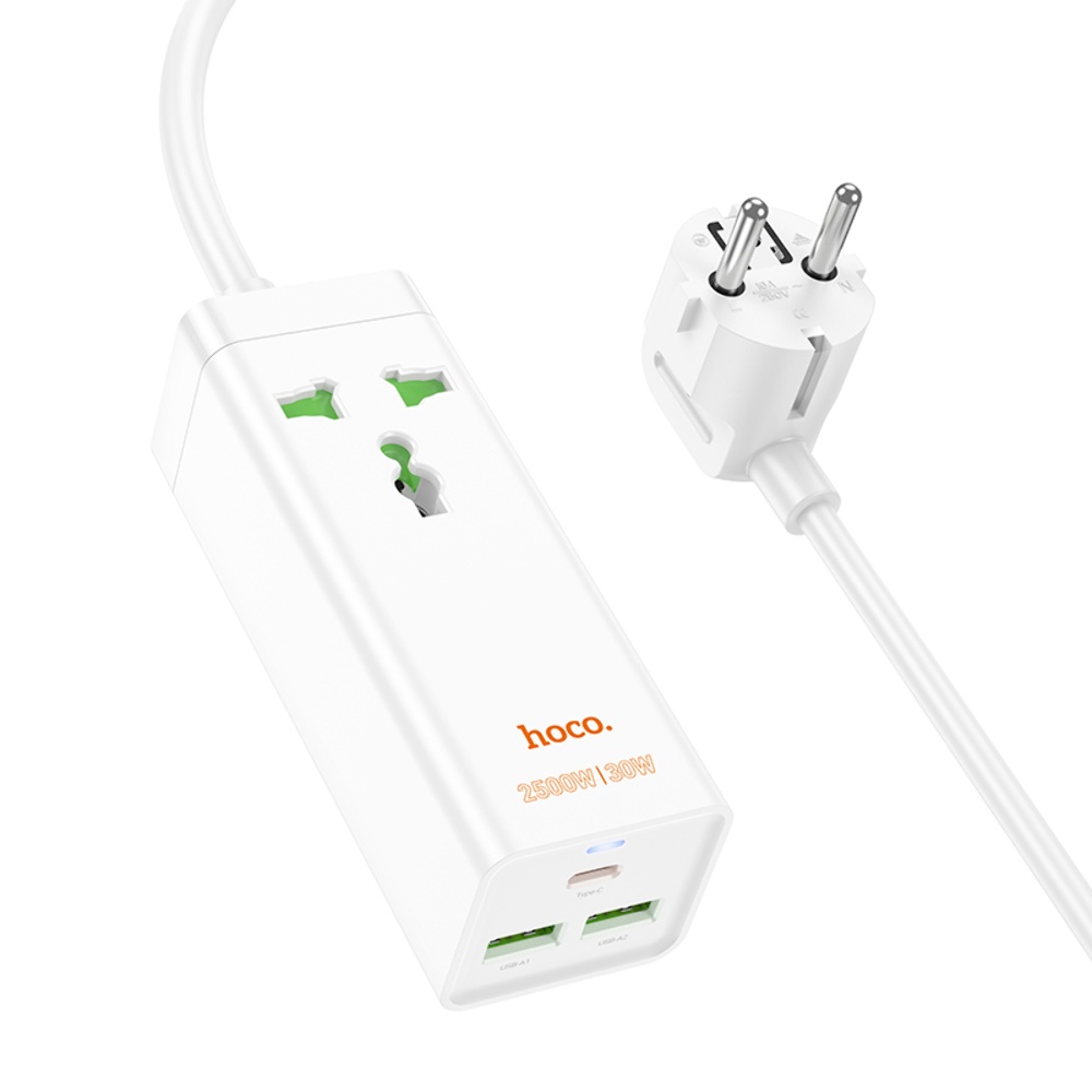 Мережний зарядний пристрій подовжувач Hoco AC9A з білим кольором - це надійний і багатофункціональний пристрій для заряджання та підключення електронних пристроїв у вашому будинку або офісі.