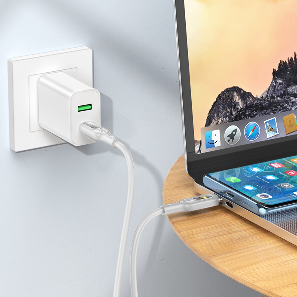 Кабель Hoco U120 з індикатором Type-C to Type-C PD 60W 1.2m grey