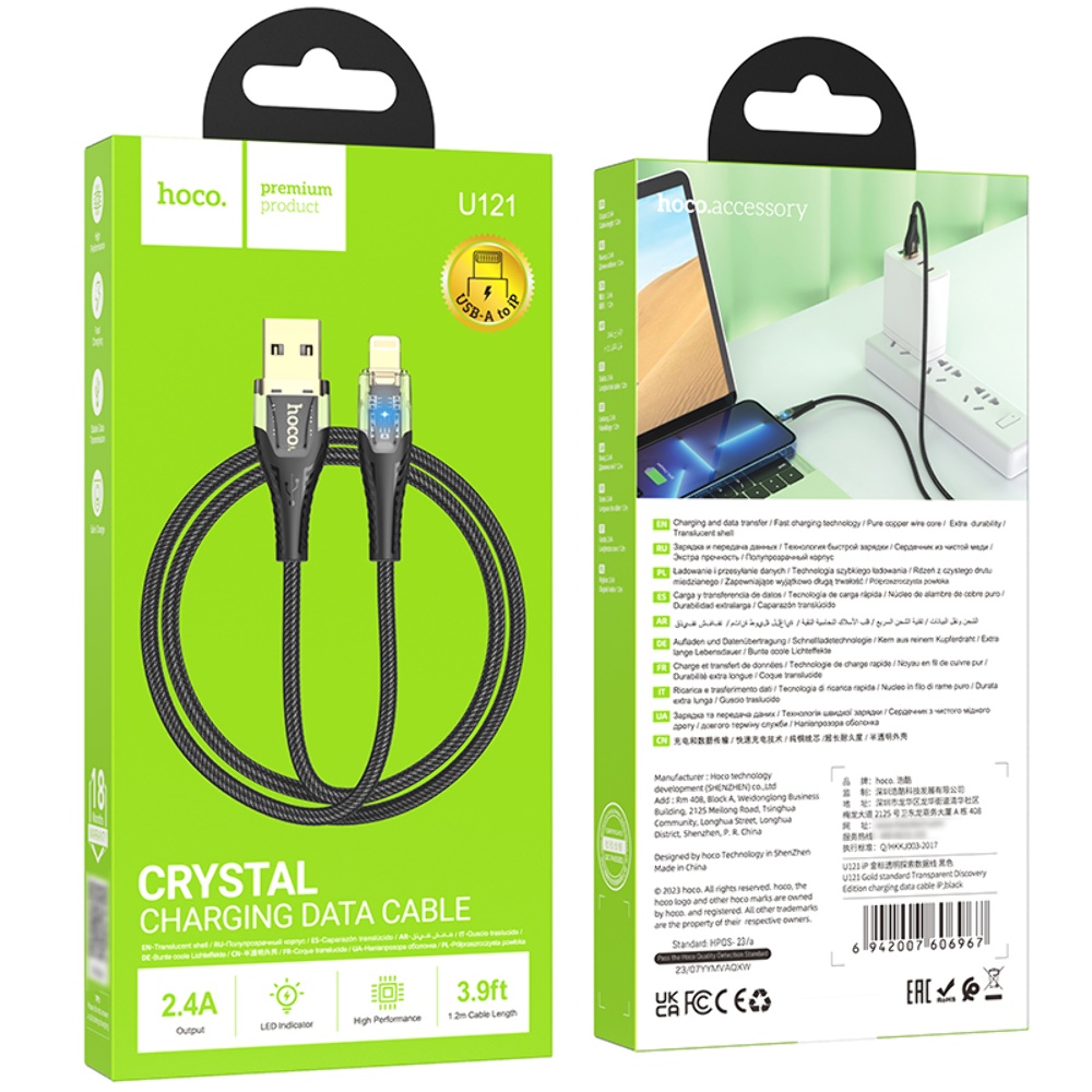Кабель Hoco U121 USB to Lightning 1.2m чорний - це високоякісний кабель для підключення пристроїв з роз'ємом Lightning до USB порту вашого комп'ютера, ноутбука або зарядного пристрою.