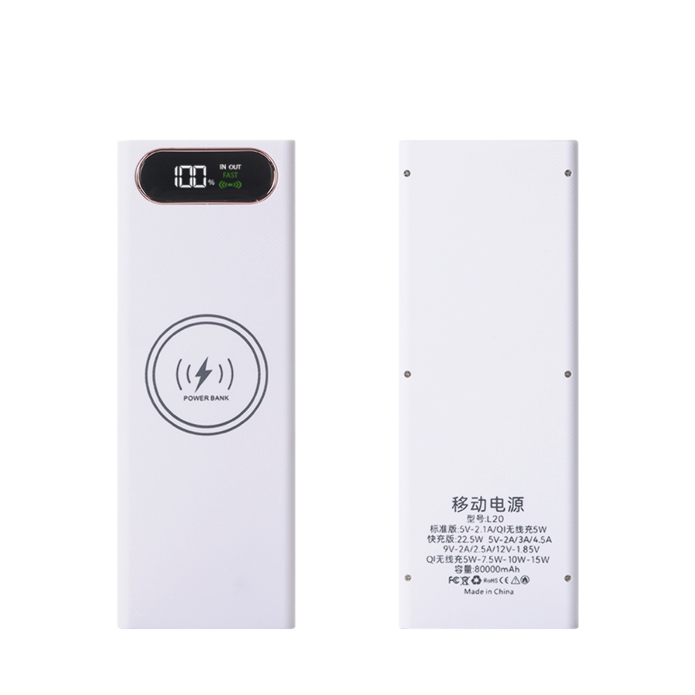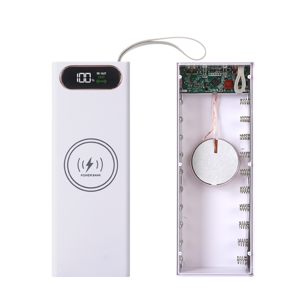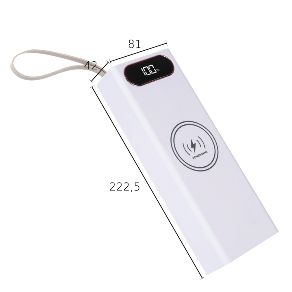 Корпус Multi-powerbank L20, під елементи 18650 до 20 шт, 22.5+15W, з бездротовою зарядкою та ліхтарем, білий є оптимальним рішенням для тих, хто прагне максимальної ємності і ефективності.