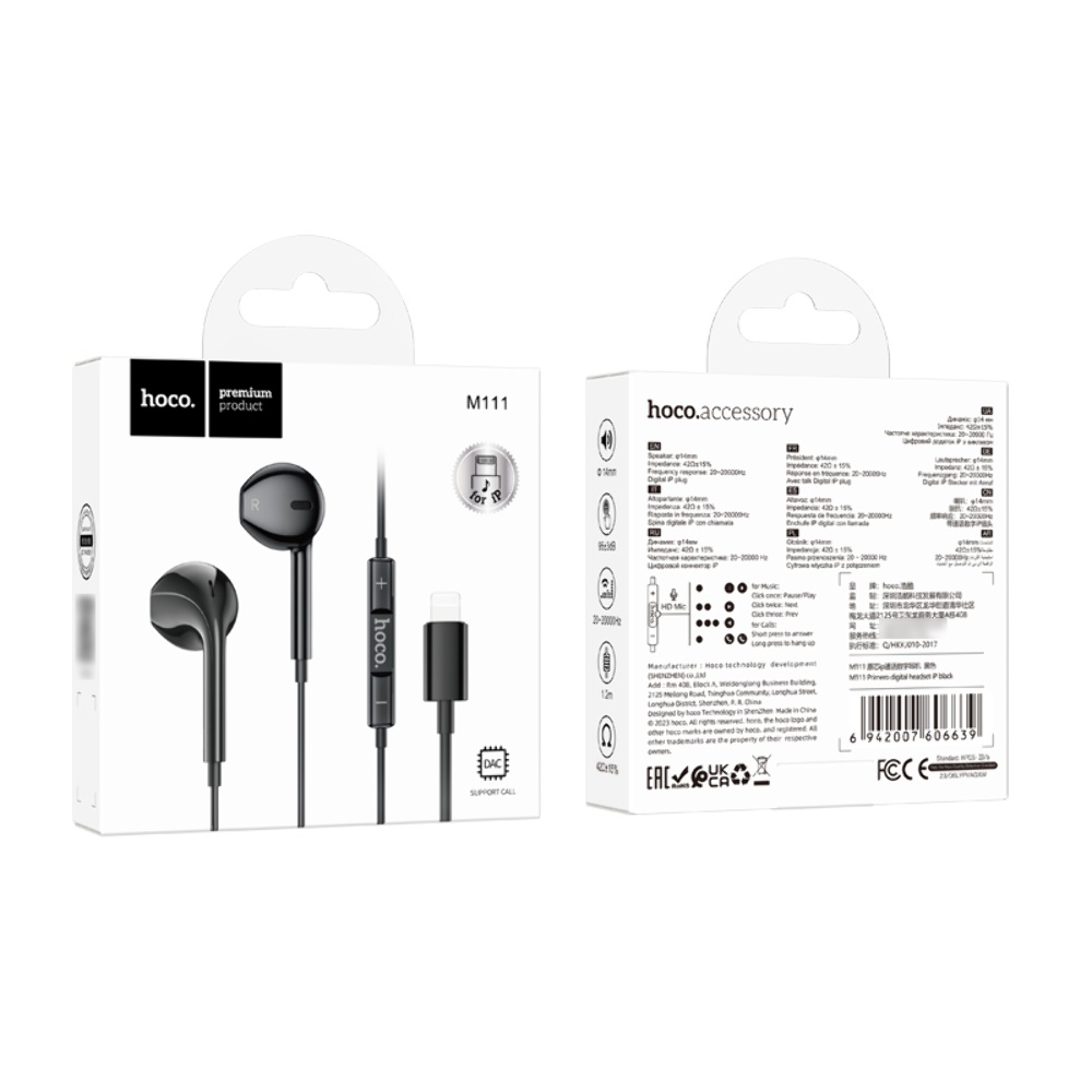 Навушники вкладки Hoco M111 Lightning у чорному кольорі - це стильні та зручні навушники, які забезпечать вам якісне звучання та комфорт при використанні.