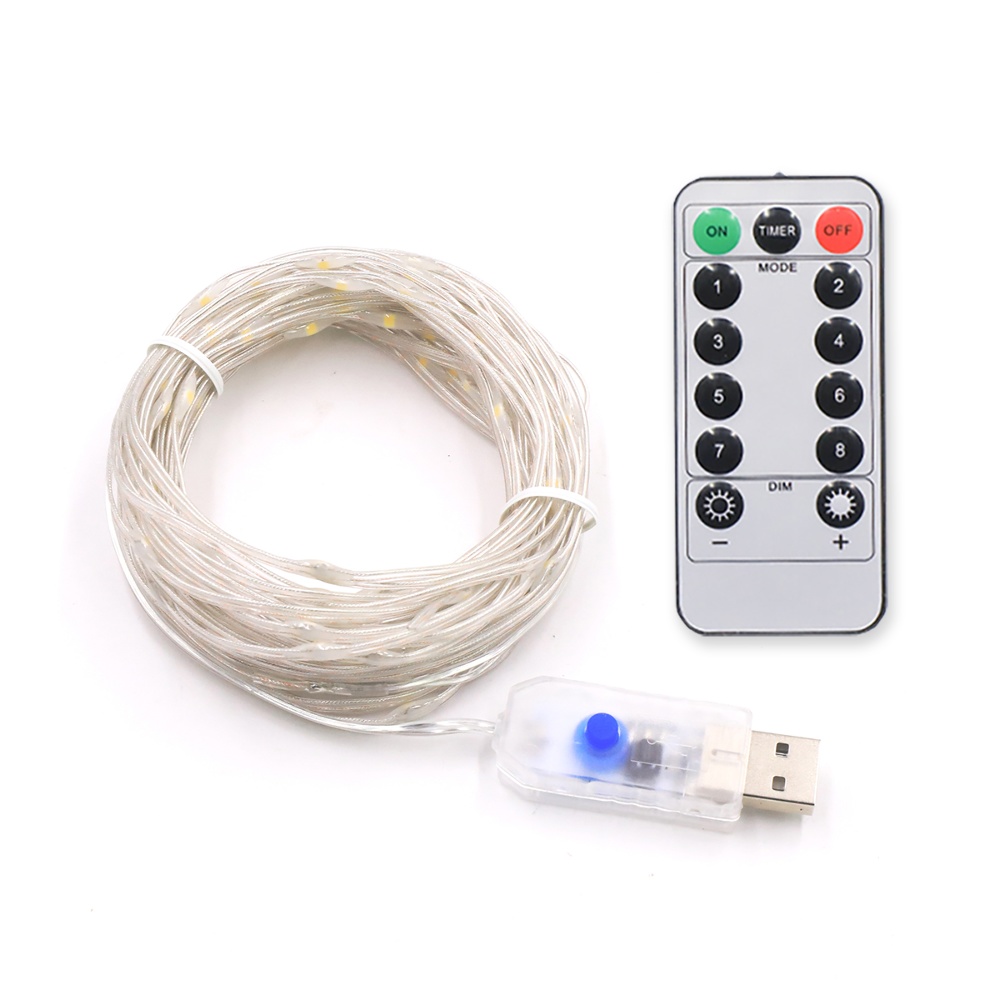 Світлодіодна гірлянда USB, провід, різнокольорова, 10 м, 100 світлодіодів, 8 режимів, з пультом